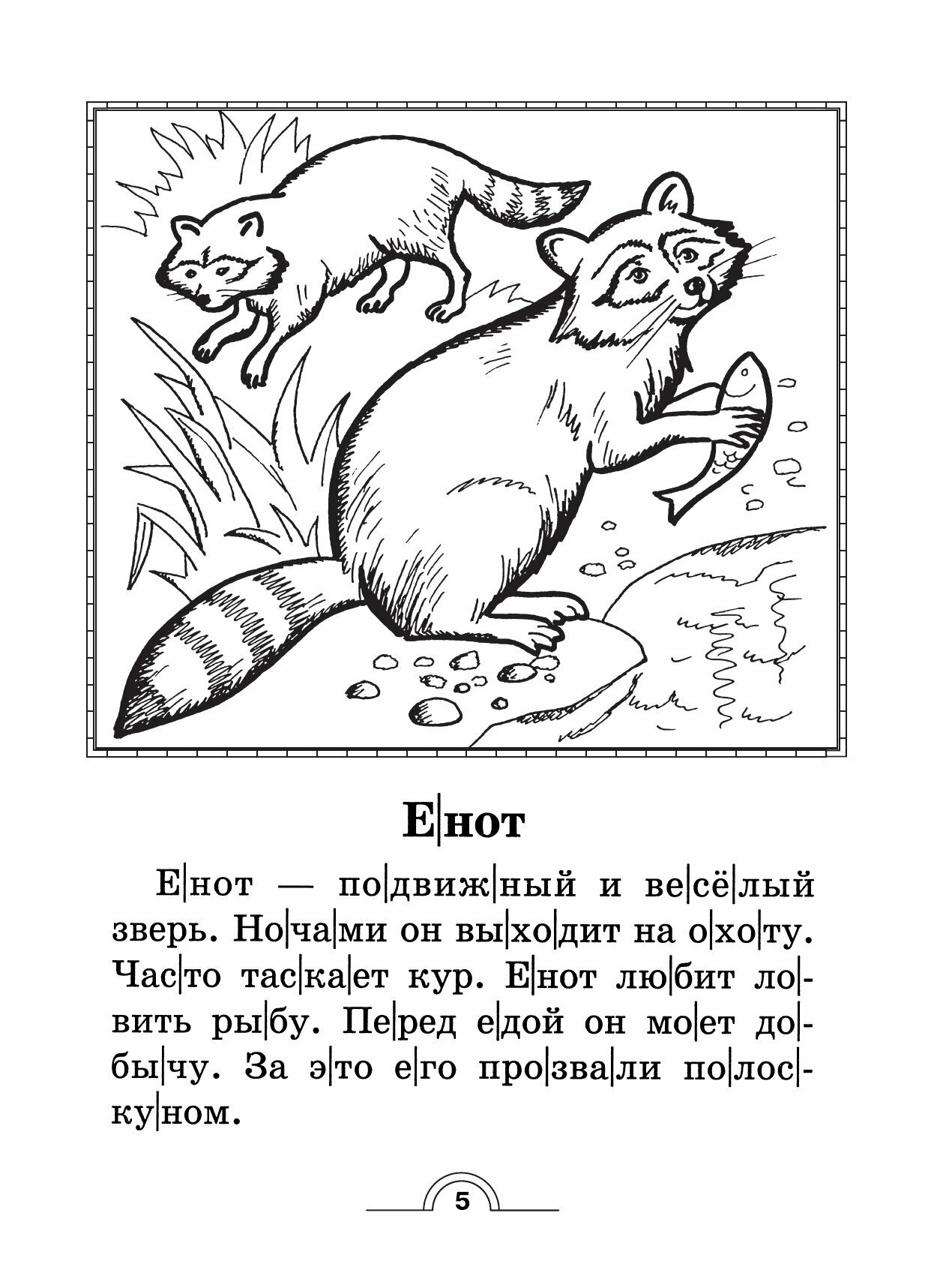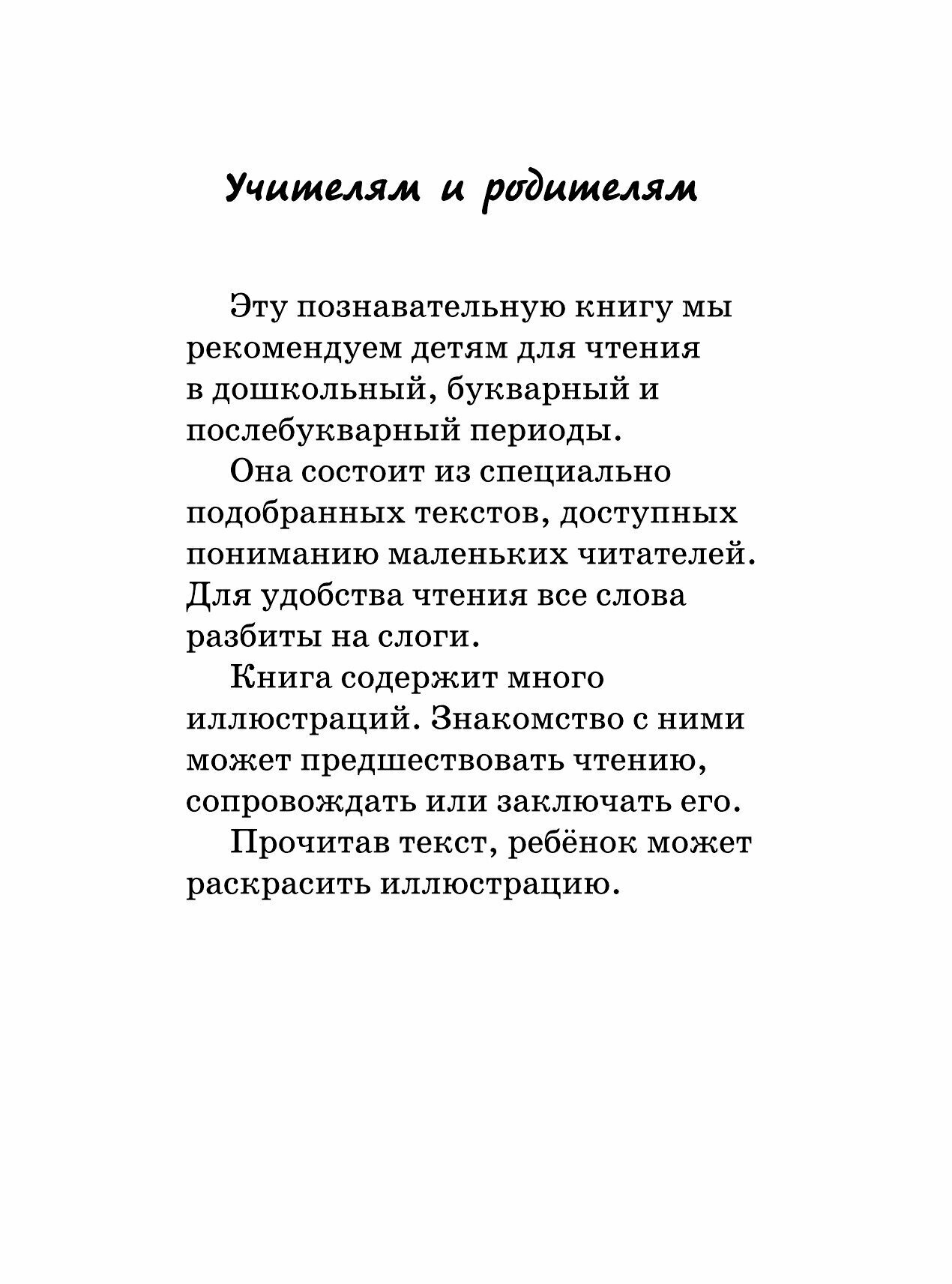 Согласна с другими рецензиями, замечательная книга для начинающих читать и по отличной цене! Дочке ровно пять лет и ей не страшно приступать потому что короткие тексты, и к тому же интересные. Есть у нас другие книги, но она всегда выбирает эту, мы играем как будто животные просят про них прочитать и потом взамен разрешают себя раскрасить. Про многих животных я и сама не знала! Из минусов, ошибка в одном из рассказов про нарвалов, пишут что это дельфины, на самом деле это киты. Качество бумаги низкое, но у нас получается раскрашивать цветными карандашами и мелками, можно сделать копии на хорошей бумаге и красить фломастерами. Слова разделены вертикальными линиями, мне кажется это удобнее для ребенка чем традиционные "-".
