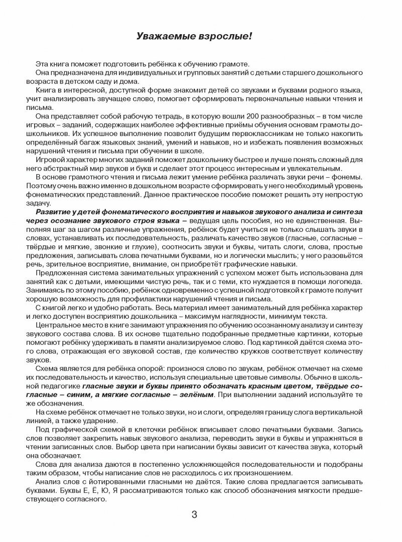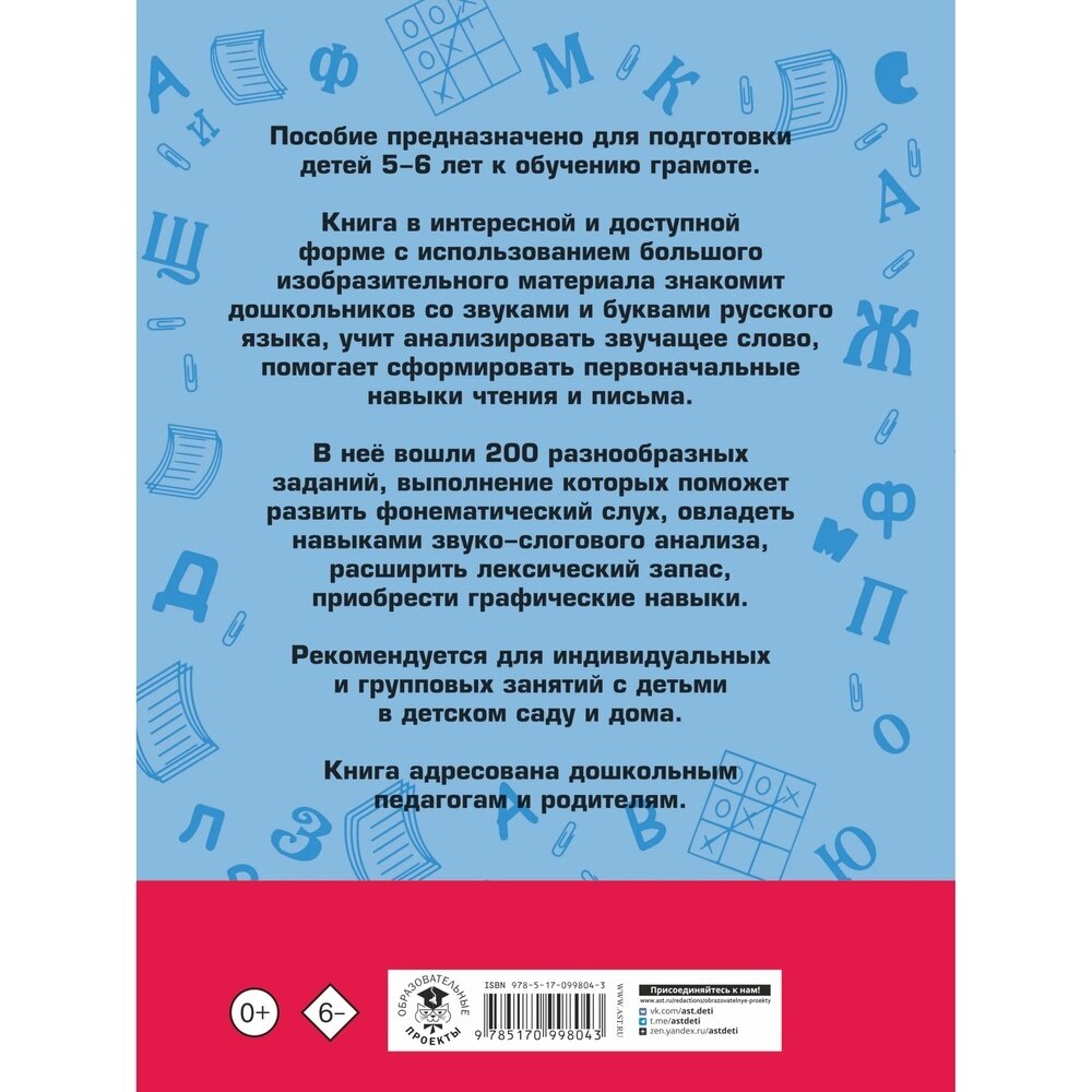 В книгу вошли 200 разнообразных заданий, выполнение которых поможет развить фонематический слух, овладеть навыками звуко-слогового анализа, расширить лексический запас, приобрести графические навыки.