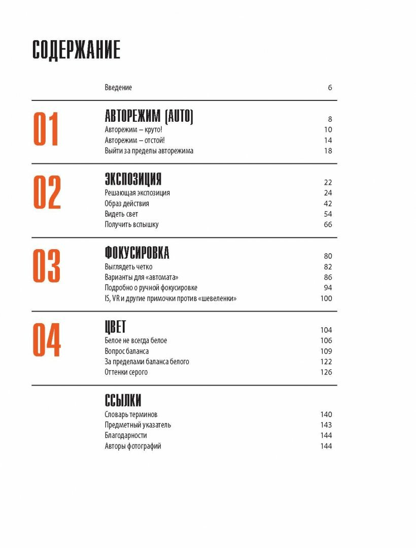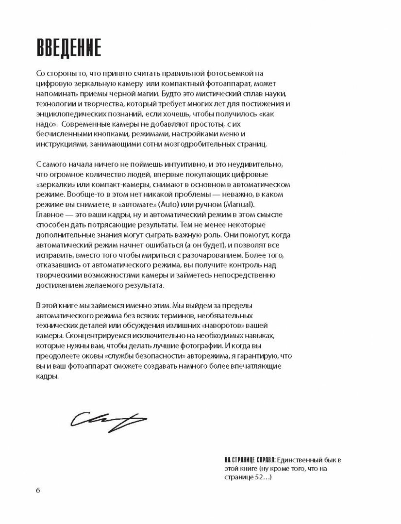 Книга просто замечательная! То, что я проходила на курсах фотографии в течение года, даётся в данной книге просто и подробно. В начале книги автор говорит о плюсах и минусах съёмки в автоматическом режиме, даёт основные сведения о том, как "видит" фотокамера. Наконец-то именно благодаря книге я разобралась с основными составляющими ручного режима фотографирования (экспозиция, фокусировка, баланс белого). Рекомендую данное издание в качестве альтернативы курсов.