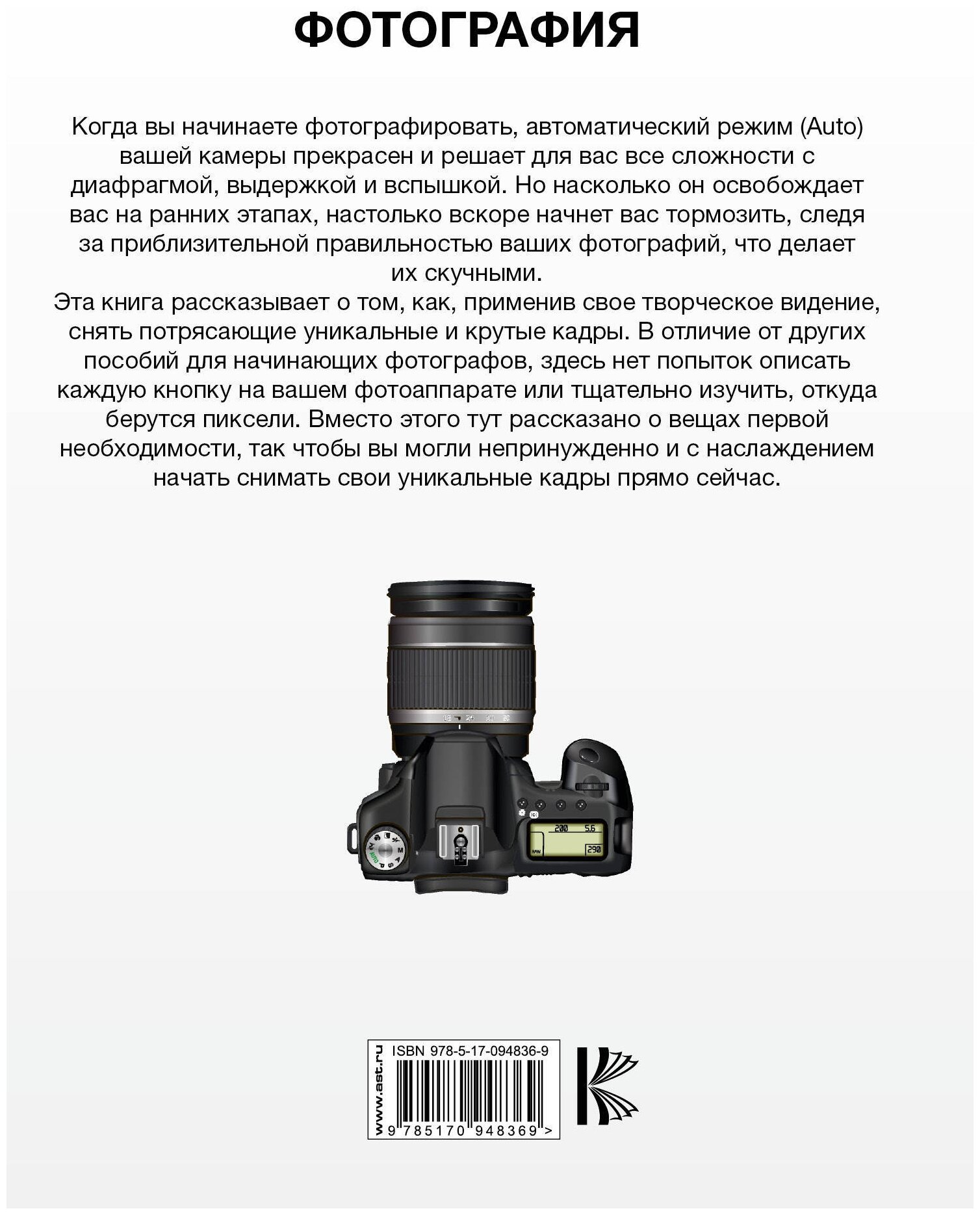 Эта книга рассказывает о том, как, применив свое творческое видение, снять потрясающие уникальные и крутые кадры! В отличие от других пособий для начинающих фотографов, здесь нет попыток описать каждую кнопку на вашем фотоаппарате, или тщательно изучить, откуда берутся пиксели. Вместо этого, тут рассказано о вещах первой необходимости, так чтобы вы могли непринужденно и с наслаждением начать снимать свои уникальные кадры, прямо сейчас.