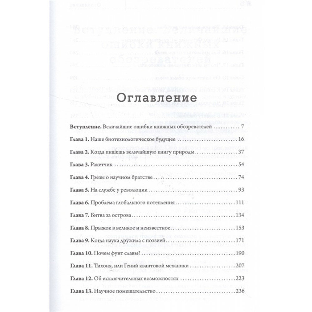 Дайсон рассказывает о величайших физиках XX века - Ричарде Фейнмане, Роберте Оппенгеймере, Поле Дираке и Стивене Вайнберге, многих, из которых он знал лично. Кроме того, он пишет о британской атомной программе под эгидой Уинстона Черчилля и об опытах Вернера фон Брауна по созданию космических ракет. Важно, что автор в провокационном, зачастую неполиткорректном стиле подходит к обсуждению самых противоречивых проблем современной науки. Дайсон предлагает свежий взгляд на историю и философию науки, а также на практику научного метода и даже на заблуждения и ошибочные теории, которые также являются частью наших отчаянных попыток понять чудеса окружающего мира.