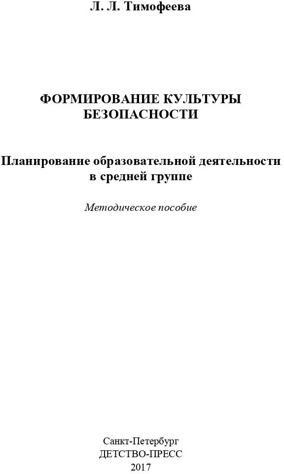 Формирование культуры безопасности. Планирование образовательной деятельности в средней группе. (Тимофеева Лилия Львовна); Детство-Пресс, 2020