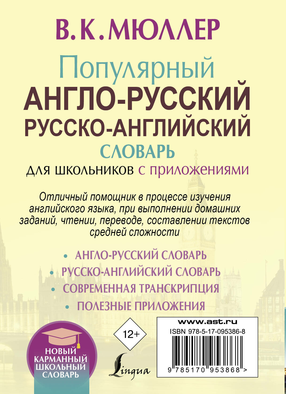 Популярный англо-русский русско-английский словарь для школьников с приложениями (Мюллер Владимир Карлович); ООО "Издательство Астрель", 2021