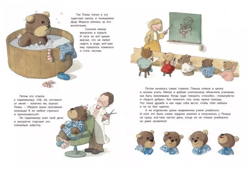 Честно говоря, далеко не самая лучшая книга из этой серии. Сюжет не новый, изложение примитивное. Нет ни юмора, ни хоть сколько-нибудь интересного развития действия. Мальчик покупает в магазине мишку с сердитым выражением лица и соответствующим характером. Через некоторое время мишка отправляется на перевоспитание к Деду Морозу. Ну и перевоспитывается, конечно.