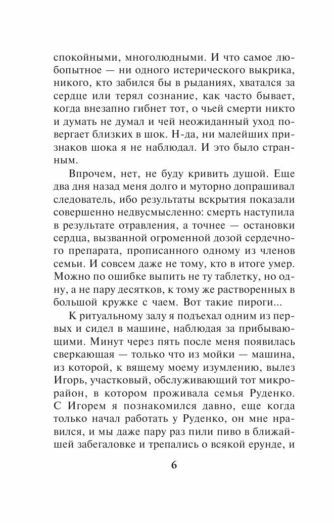 Так, так, все так. Всегда любила читать книги АМ, детективы и современную прозу - качество текста, качество и количество разнообразных суждений, к которым подводят главные, и не очень, герои. Подкупает, что книга написана от нескольких лиц - это дает повод задуматься о том, что сколько людей, столько и мнений.