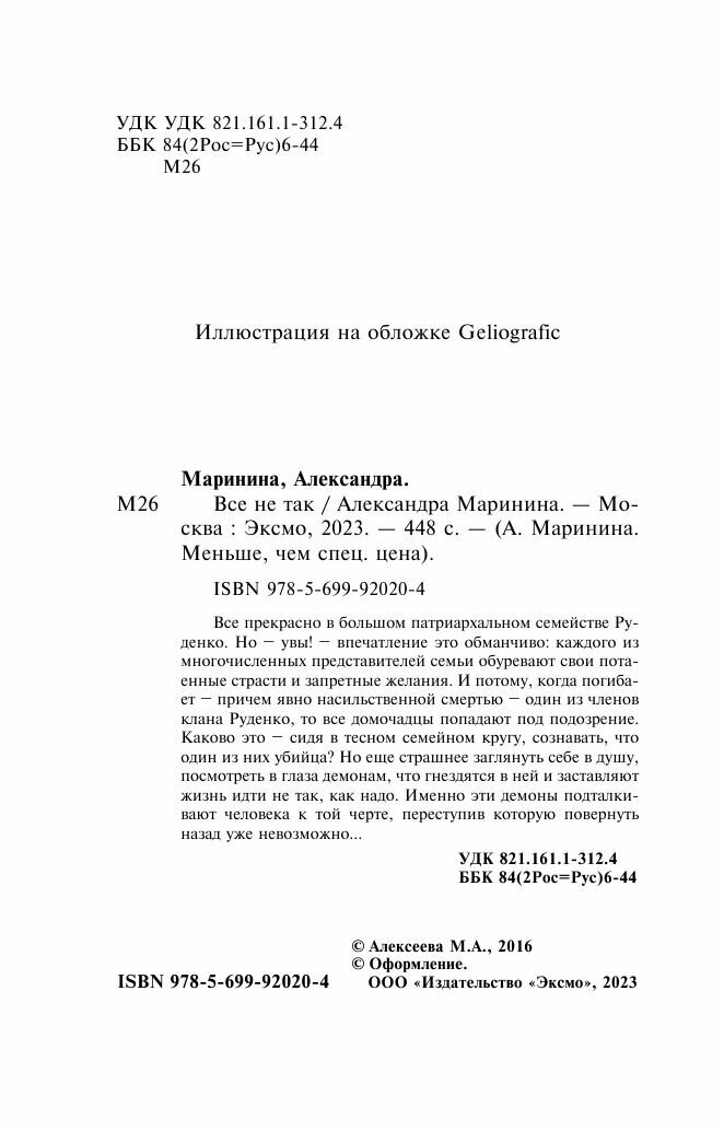 Книга: Все не так (Маринина Александра Борисовна); ООО "Издательство "Эксмо", 2016