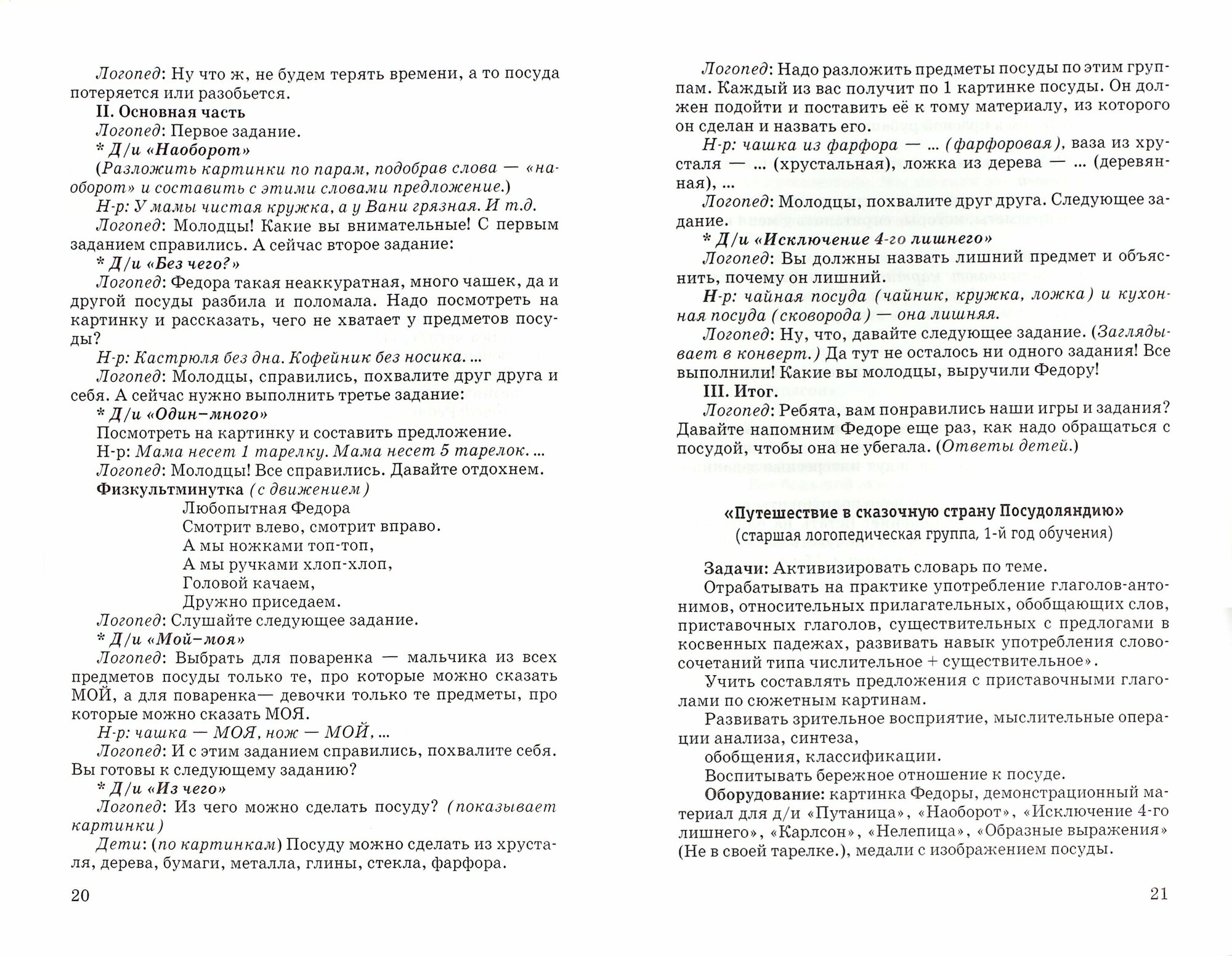 Методическое пособие включает пояснительную записку; задачи и содержание коррекционно-развивающей работы по лексико-грамматической теме "Посуда"; перечень основных умений и навыков, которыми должны овладеть дети; примерный перспективный и календарный планы занятий по совершенствованию лексико-грамматических средств языка и развитию связной речи для детей с ОНР 1-го и 2-го года обучения в логопедической группе; перечень отрабатываемых лексико-грамматических категорий по данной теме; перечень демонстрационного материала и CD-диск с демонстрационными играми для фронтальных и подгрупповых занятий. В комплект входит рабочая тетрадь для закрепления отработанных навыков на индивидуальных занятиях с логопедом, воспитателем или родителями.