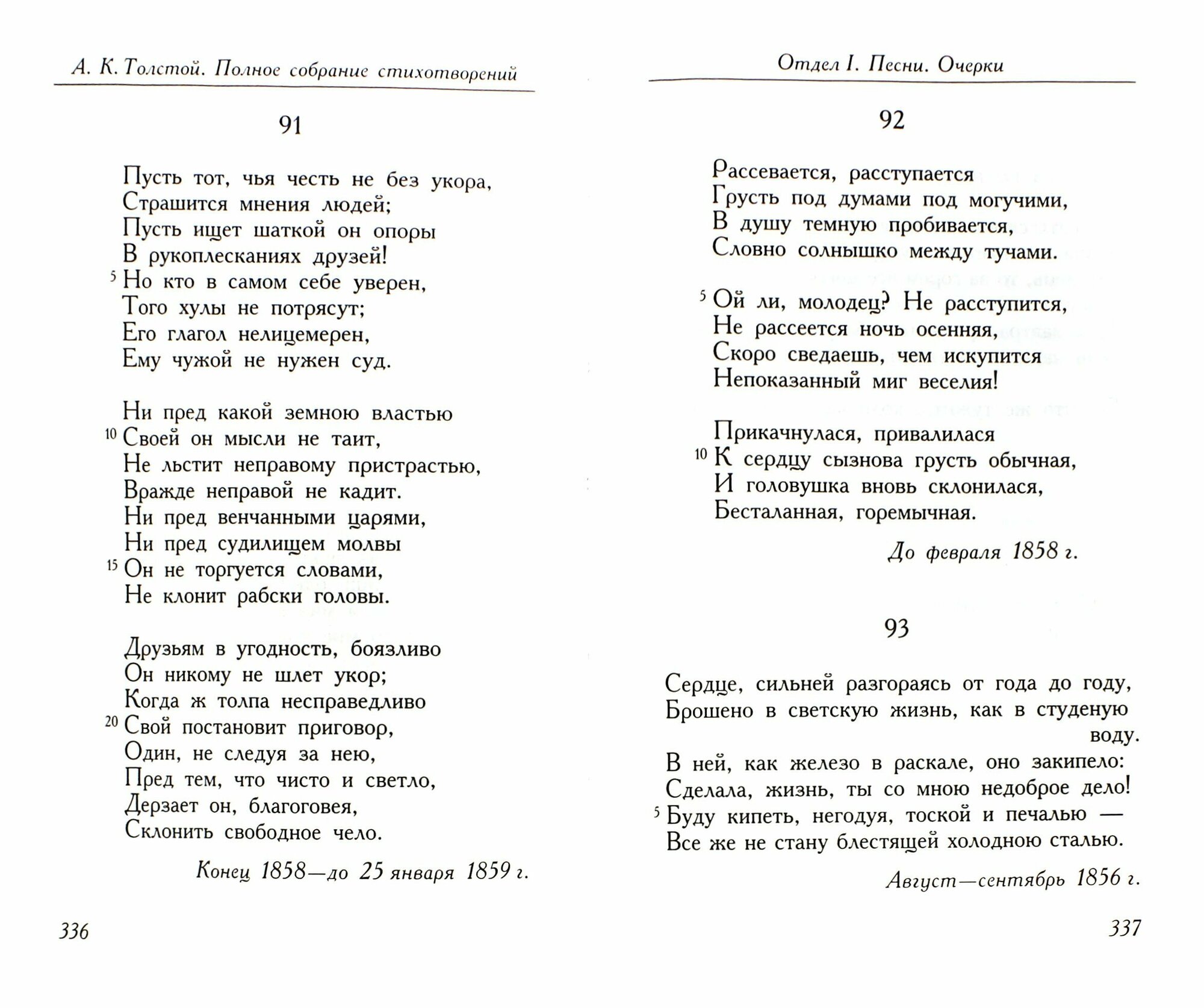 Стихотворения А. К. Толстого представляют собой попытку потомственного аристократа максимально приблизиться к фольклорным поэтическим формам. В основной корпус предполагаемого издания входят лирические произведения, произведения балладного, "былинного", притчевого жанров, переводы.