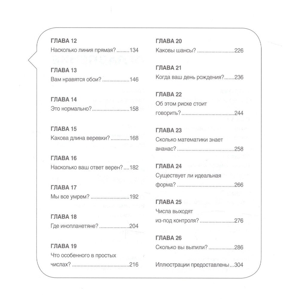 Книга показывает не только математику в нашей жизни, но некоторые смежные области знаний. Подробно рассказано про разные системы счисления, о-о-очень большие числа, объяснено, что такое производная и интеграл. Из более практических вещей - как распространяется эпидемия или зачем и от чего делать прививки, как растут проценты по кредиту и каким социологическим опросам можно доверять. А также какие математические формы можно найти в живой природе, какие законы используют в орнаментах обоев и мозаик, как правильно выбрать единицу измерения...и много чего еще.