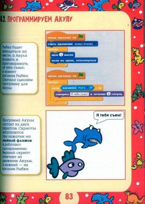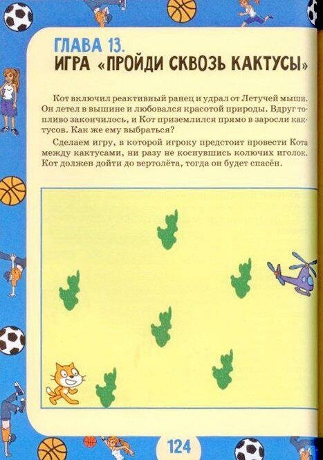 Рассказано, как скачать и установить Scratch, написать первую программу, мультфильм и игру. Приведены примеры создания более сложных мультфильмов и компьютерных игр. Дети научатся создавать и сохранять проекты, работать в графическом редакторе, озвучивать фильмы, использовать логические операторы, циклы, условия, списки и другие элементы программирования. Попутно они узнают про координатную плоскость, проценты, десятичные дроби, градусы и другие математические понятия.