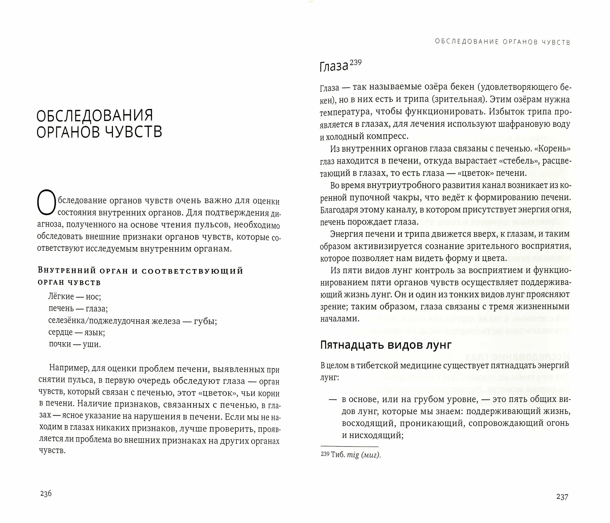Книга привлекла меня как дополнительный источник знаний о целостной медицине, свойственной восточному направлению мысли. В ней изложено много практических советов, которые расширяют личное представление о самом себе и своем теле. Пришло время, когда идти на прием к врачам, не имея никакого представления о происходящих в теле процессах уже невозможно - болезнь с "удовольствием" начнет осваивать невежественное тело. Добрая книга и много полезного изложено доступно и значимо. Диагностика всегда является краеугольным камнем преткновения в западной медицине, чего не скажешь о восточной. Тибетская часть ее в этом имеет свою уникальность. Думаю, что книга будет полезна не только медикам, но и всем, кто хочет знать о себе более того, что знает. Очень красивая книга, прекрасно издана. правда я люблю более яркий шрифт, но это моя особенность. Рекомендую.