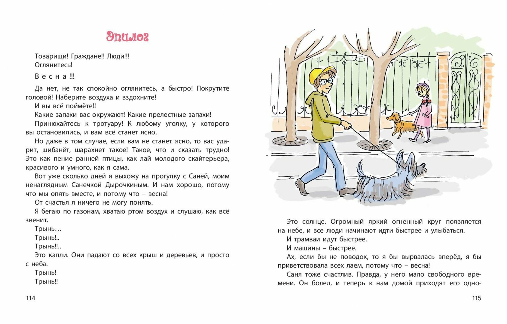 "Давайте познакомимся! Я - Мотя из семьи Дырочкиных, скайтерьер. Именно я буду рассказывать вам эту историю. А началась она с того, что я съела чужую перчатку. Вы, наверное, знаете, что брать чужое неприлично? А ещё неприличнее чужое есть!