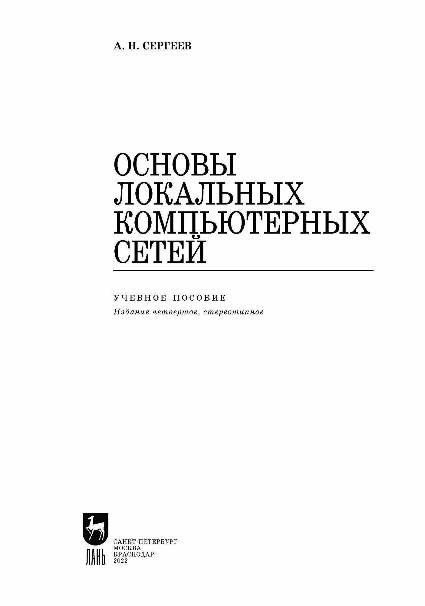 Основы локальных компьютерных сетей. Учебное пособие (Сергеев Алексей Николаевич); Лань, 2022