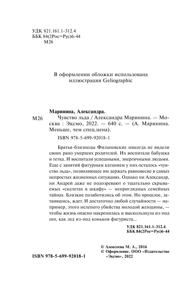Книга: Чувство льда (Маринина Александра Борисовна); ООО "Издательство "Эксмо", 2016