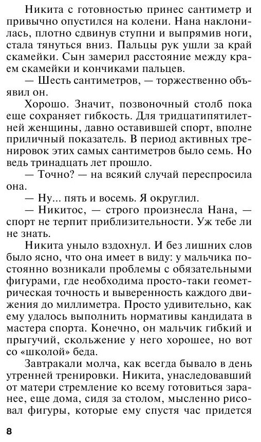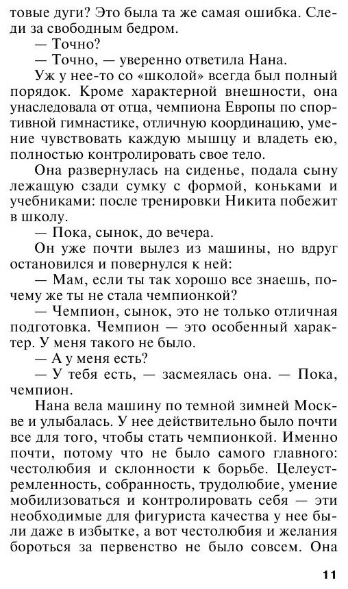 Братья-близнецы Филановские никогда не видели своих рано умерших родителей. Их воспитали бабушка и тетка. И воспитали успешными, энергичными людьми. Еще с занятий фигурным катанием у них осталось "чувство льда", позволяющее им держать равновесие в самых непростых жизненных ситуациях. Однако ни Александр, ни Андрей даже не подозревают о тщательно скрываемых "скелетах в шкафу" - неприглядных семейных тайнах. Близкие позаботились об этом. Но прошлое, затаившись, ждет. И достаточно любой случайности - например, этого нелепого убийства молодой женщины, - чтобы жизнь опасно накренилась и выскользнула из-под ног, как лед из-под коньков фигуриста.