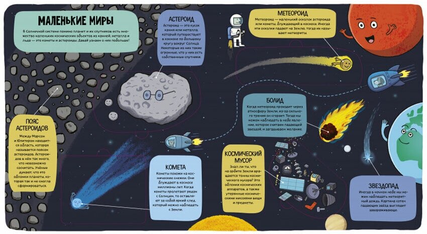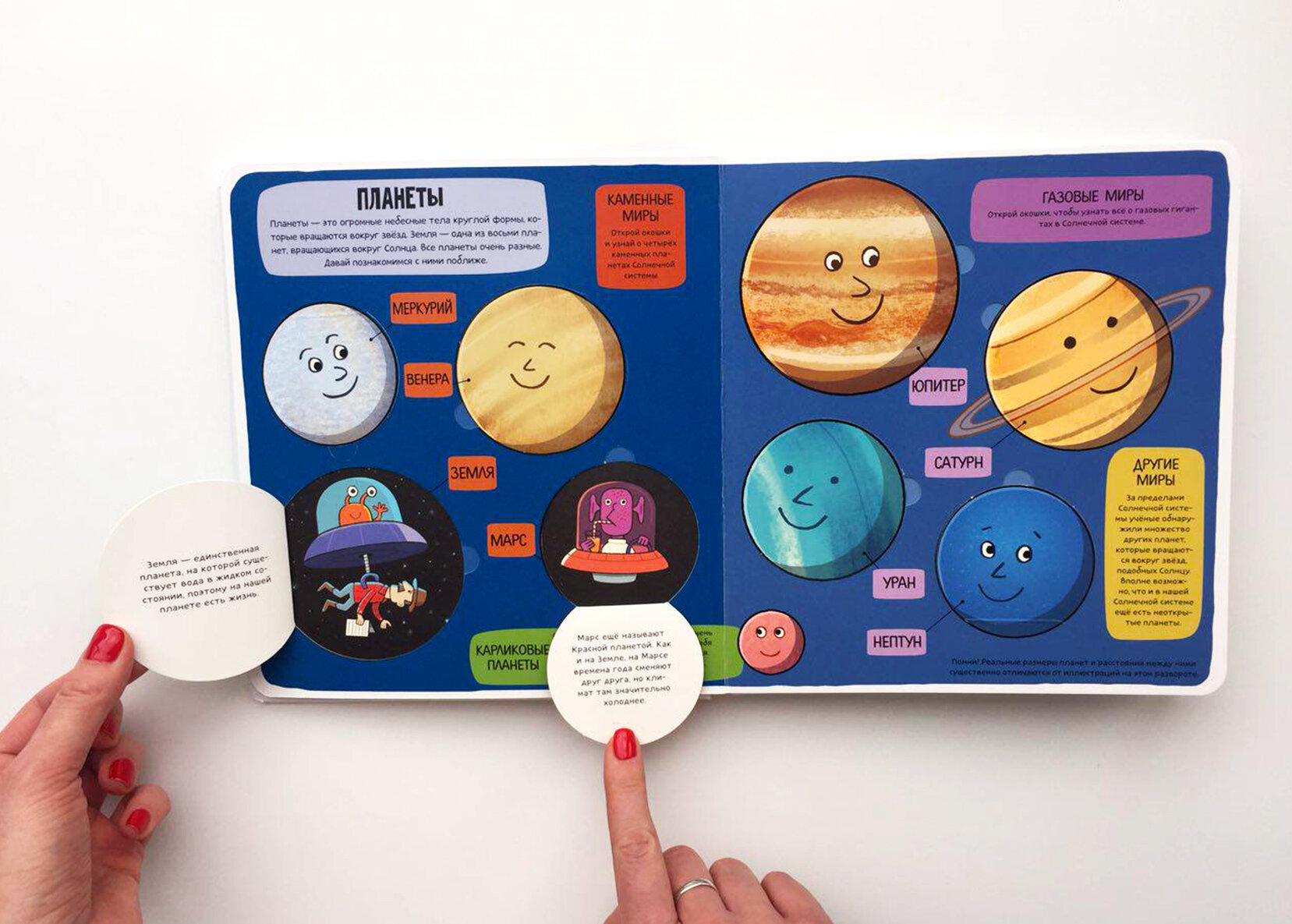 На развороте с планетами каждая планета открывается и "в окошке" написано немного информации.