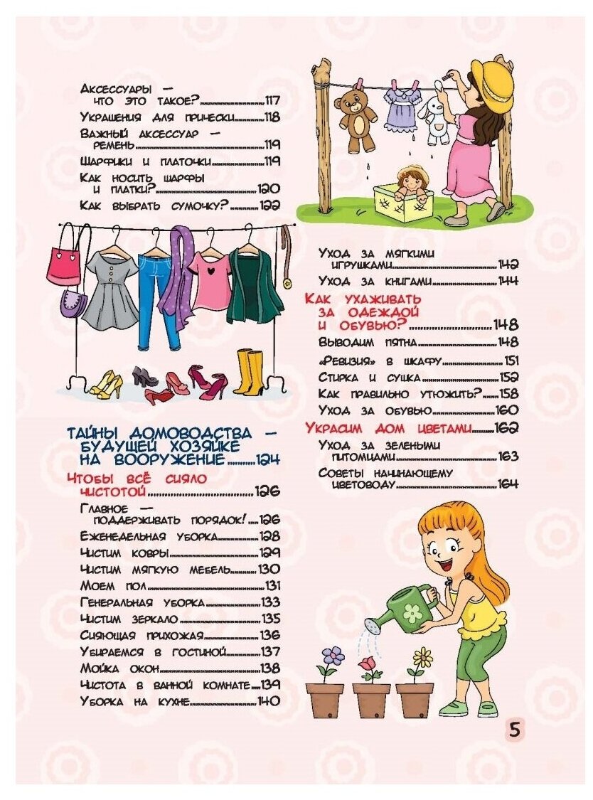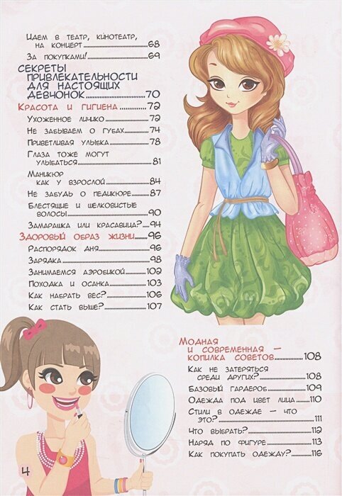 В свое время мне подарили подобную энциклопедию для девочек лет в 7-8. Поэтому я выбрала эту книгу в подарок своей племяннице в честь поступления в школу. По своему опыту знаю, что это очень актуальный подарок для этого возраста. Многое из того, что есть в энциклопедии ты только открываешь для себя в этом возрасте. Книга расскажет, как строить отношения с родителями, подругами и друзьями, как добиться красивой осанки и стать выше ростом. А также в ней есть ценные советы по домоводству: уборка, шитье и уход за одеждой. Что меня приятно порадовало, так это глава, посвященная кулинарии. Здесь есть рецепты самых простых блюд: яичница, гречка, бутерброды. Думаю, что ребенку полезно иметь основные навыки готовки, ведь не всегда родители успевают что-то приготовить. Сама книга очень красочная, листы плотные, бумага мелованная.