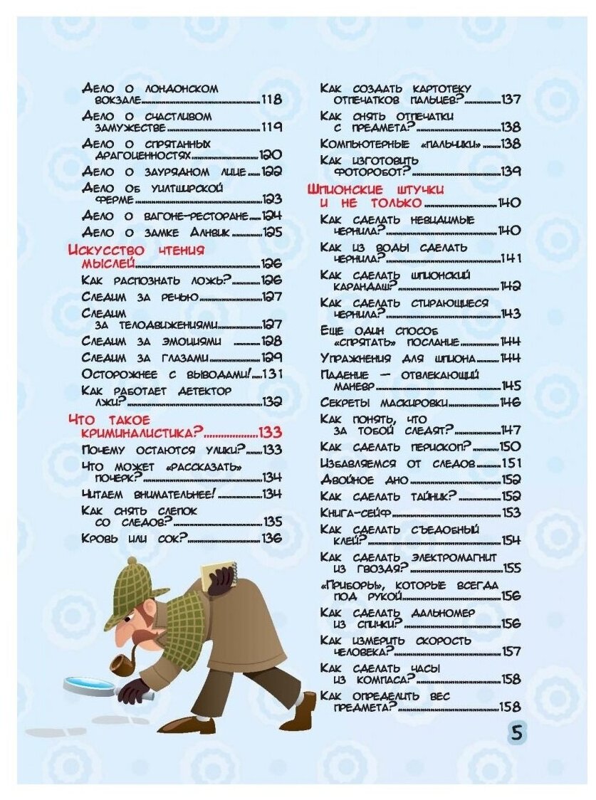 Как снять отпечатки пальцев? Можно ли натренировать мозг? Как научиться мыслить дедуктивно? О чем может рассказать почерк? Как работает детектор лжи? Неужели кола может быть невидимой, а яйцо - серебряным? Каким образом отправить сигнал по воде? У каждого мальчишки миллион вопросов обо всём на свете. У тебя тоже? Ответы на них ты узнаешь, когда прочтешь эту книгу. Если ты хочешь научиться выживать в экстремальных условиях, владеть приемами самообороны, писать зашифрованные послания, строить планеры и показывать фокусы - эта большая копилка тайн для тебя. В ней ты найдешь проверенные советы, полезные хитрости, красочные иллюстрации и подробные схемы - всё самое важное и интересное. Хочешь стать тем, с кем любой готов "пойти в разведку"? Тогда переверни страницу!
