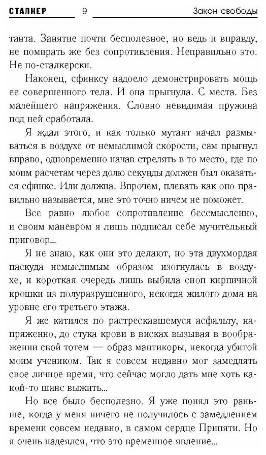 Очередная «Силловская» книжка про злоключения бедного Ивана (в ряду сталкеров известного, как Снайпер, Побратим смерти, «Призрак №2»… ) по общему количеству испытаний и приобретений в ходе этих испытаний Ваня уже к концу Закона Клык должен был, как минимум стать всезнающим и всеведущим Гуру действия, ну или полностью развоплотившись уйти в мир чистого действия, этакую сталкерскую Вальгаллу – мир боя в котором бой есть сама цель существования мира. Самое интересное что Дмитрий Силлов пишет книги специально на 2 вечера медленнее их читать не получается, а быстрее невкусно. Честно после эпилога Закона Долга ждал чего-нибудь «Лавкравтовского» типа пришествия Большого Ктулху.