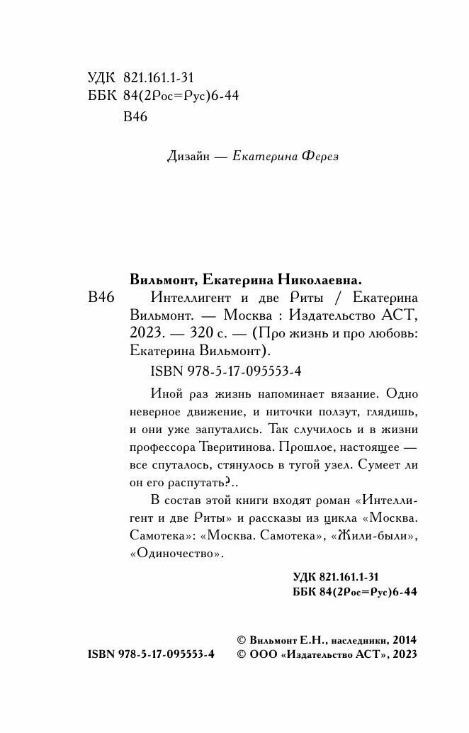 В этой книге впервые выходит роман "Интеллигент и две Риты" и рассказ из цикла "Москва. Самотека".