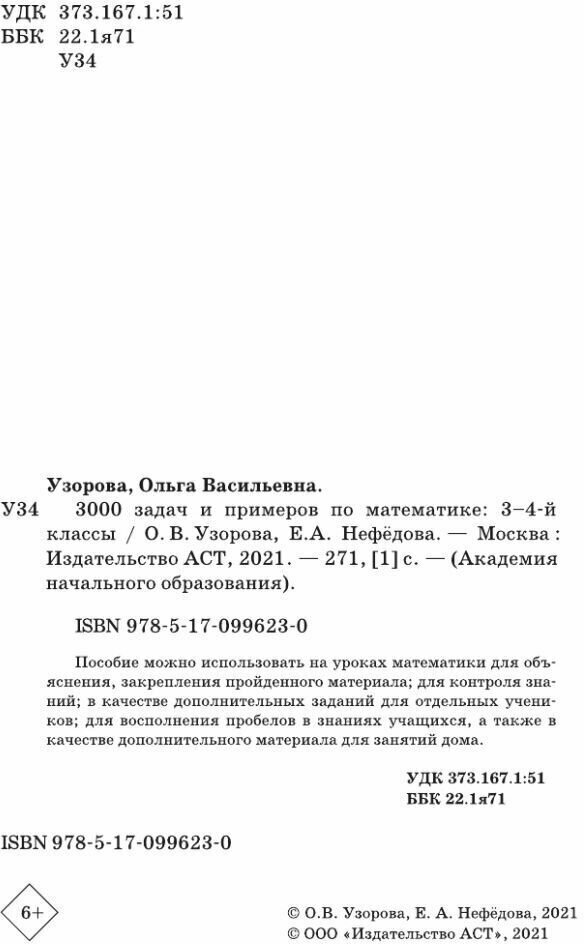 Математика. 3-4 классы. 3000 задач и примеров (Узорова Ольга Васильевна, Нефедова Елена Алексеевна); ООО "Издательство Астрель", 2019