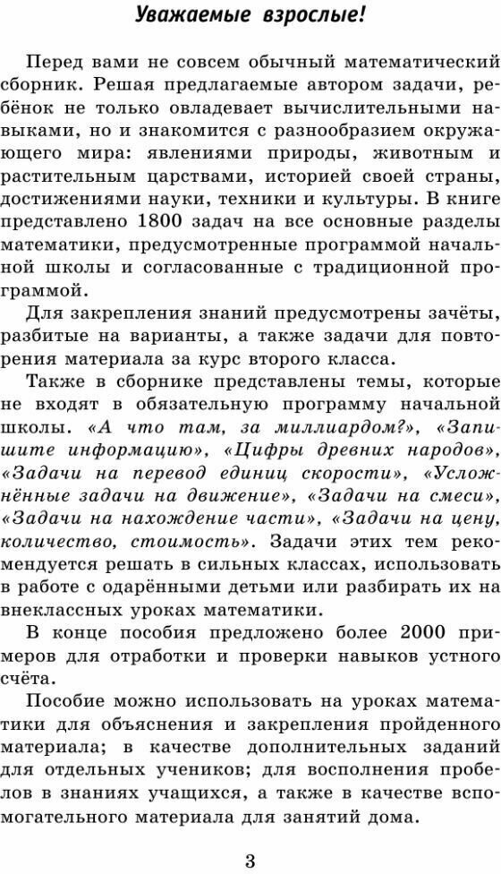 В книге представлены 3000 задач и примеров на все основные разделы математики, предусмотренные программой начальной школы.