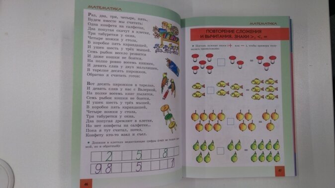 Идеально сочетает в себе обучение и игры. Понравилось, что можно сразу в самой книге все писать, отмечать и рисовать (хоть и жалко, старались делать это аккуратно карандашом). Есть абсолютно все, какие-то задания конечно показались слишком сложными, а какие-то очень лёгкими даже для пяти лет, но возможно в них есть какой-то скрытый смысл, что бы ребенка например подтолкнуть к нужной мысли... Вся информация удобно сформирована по главам, можно проходить одну-две в день и не "перегружать" мозг ребенка. И да, все очень красиво оформлено!