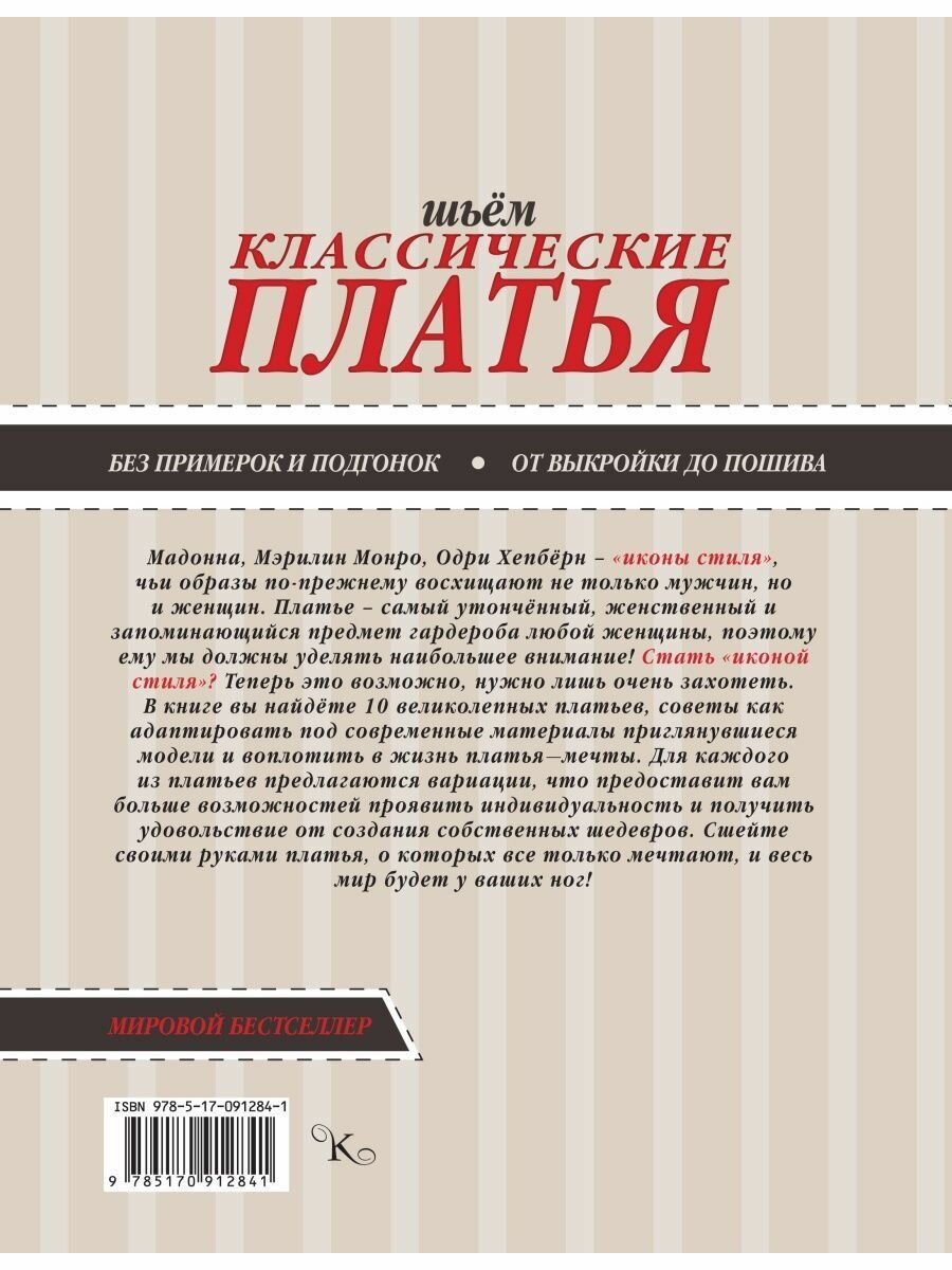 Мадонна, Мэрилин Монро, Одри Хепберн - "иконы стиля", чьи образы по-прежнему восхищают не только мужчин, но и женщин. Платье - самый утонченный, женственный и запоминающийся предмет гардероба любой женщины, поэтому ему мы должны уделять наибольшее внимание! Стать "иконой стиля"? Теперь это возможно, нужно лишь очень захотеть. В книге вы найдете 10 великолепных платьев, советы как адаптировать под современные материалы приглянувшиеся модели и воплотить в жизнь платья-мечты. Для каждого из платьев предлагаются вариации, что предоставит вам больше возможностей проявить индивидуальность и получить удовольствие от создания собственных шедевров. Сшейте своими руками платья, о которых все только мечтают, и весь мир будет у ваших ног!