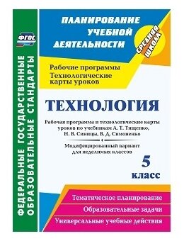 Пособие содержит модифицированный вариант рабочей программы и технологические карты уроков технологии для 5 классов (неделимых), составленные в соответствии с Примерной основной образовательной программой и с учетом требований ФГОС ООО на основе авторской программы А. Т. Тищенко, Н. В. Синицы, предполагающие реализацию компетентностного, личностно ориентированного, деятельностного подходов к содержанию образования.