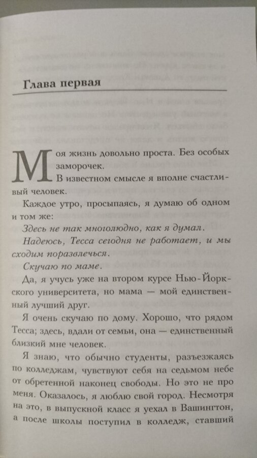 Познакомилась с этим автором, прочитав её серию "После", которая полностью завладела моим сердцем. Вот и до этой серии добралась. Начав читать книгу, думала, что вот и пришло разочарование. По началу всё шло как-то скучно, очень много описаний, мало диалогов. Но сюжет неожиданно стал развиваться именно где-то с середины книги. И всё моё внимание было приковано к книге . Мне начал симпатизировать Лэндон, главный герой. С каждой страничкой я понимала, что вот он - идеальный мужчина. В конце книги начала развиваться самая интересная интрига. Это отношения Лэндона и Норы. Это самый главный секрет Норы, который мне так и не удалось узнать ((( Всё откроется только во второй части. Буду ждать с нетерпением вторую часть. Советую к прочтению тем, кто верит в чудо и любовь !!!