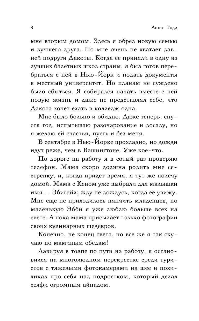 Книги Анны Тодд жду с нетерпением, т.к. до этого прочитала всю серию После и от всех книг осталась в полном восторге, перечитывала несколько раз. Серию книг о Лэндоне тоже ждала, т. к. его персонаж мне тоже интересен. И вот,наконец-то вчера получила книгу, начала читать. Сюжет очень хороший, читается легко и эта книга реально затягивает, хочется побыстрее дочитать, чтобы узнать как сложится судьба героя, и на ком он в конце концов женится. Очень радует, что и здесь есть много упоминаний о предыдущих героях Хардине и Тессе. Вообщем книгу рекомендую к прочтению даже тем кто считал Лэндона скучным героем.( я лично так не считала).