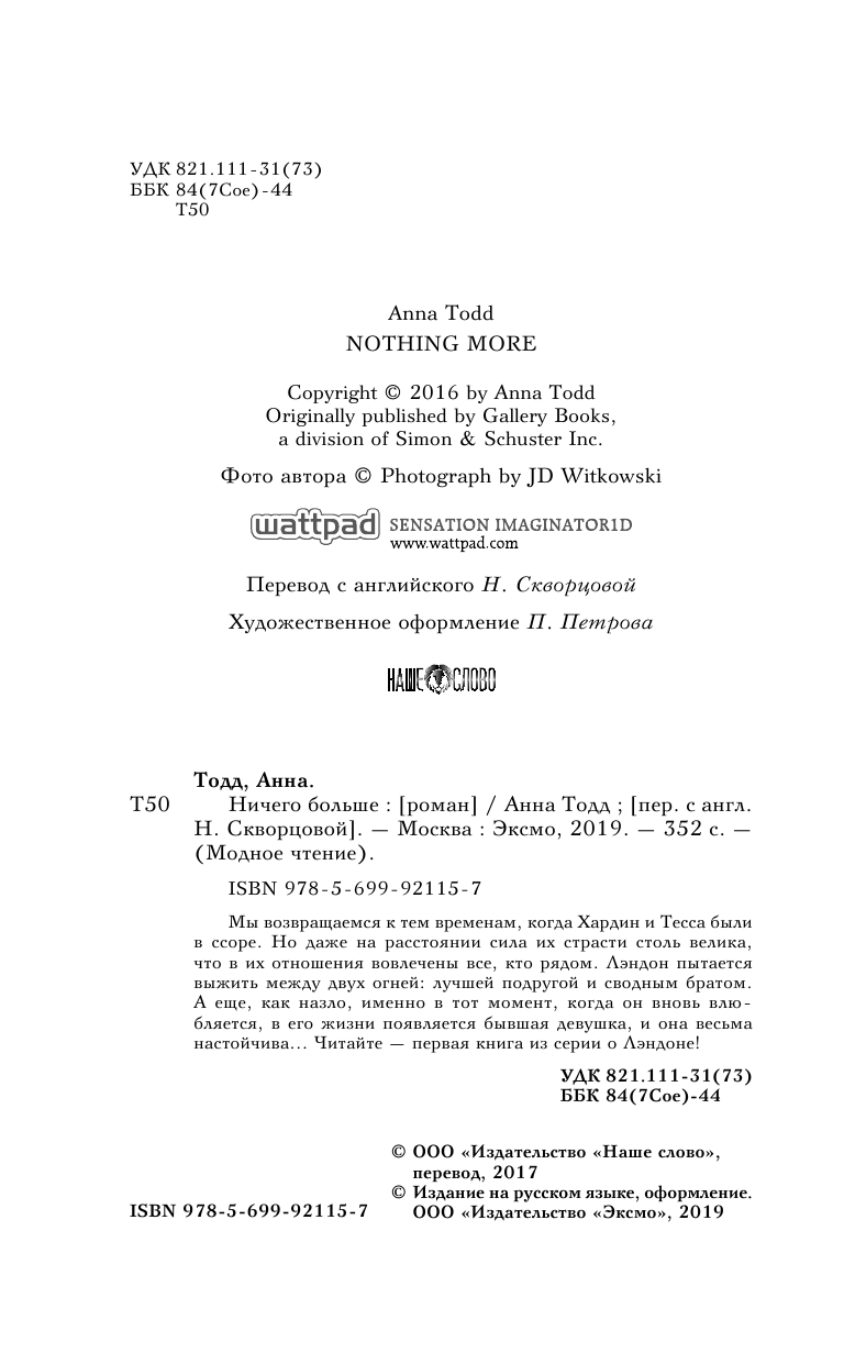 Книга: Ничего больше (Скворцова Н. (переводчик), Тодд Анна); Эксмо, 2017
