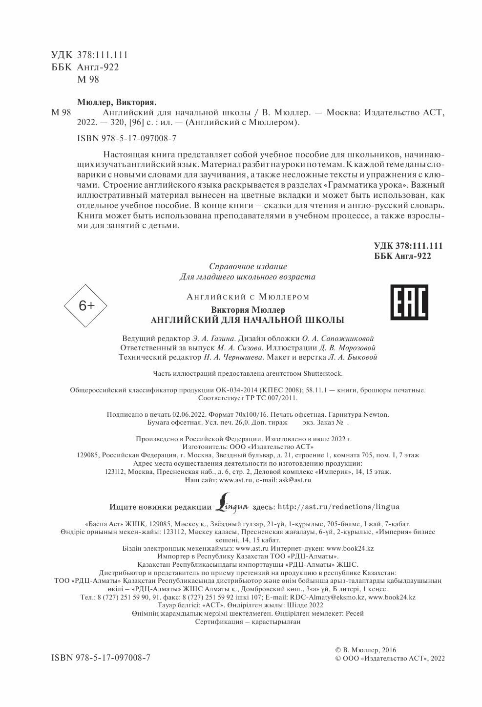 Английский для начальной школы (Морозова Дарья Владимировна, Мюллер Виктория (соавтор), Мюллер Владимир Карлович (соавтор)); АСТ, 2017