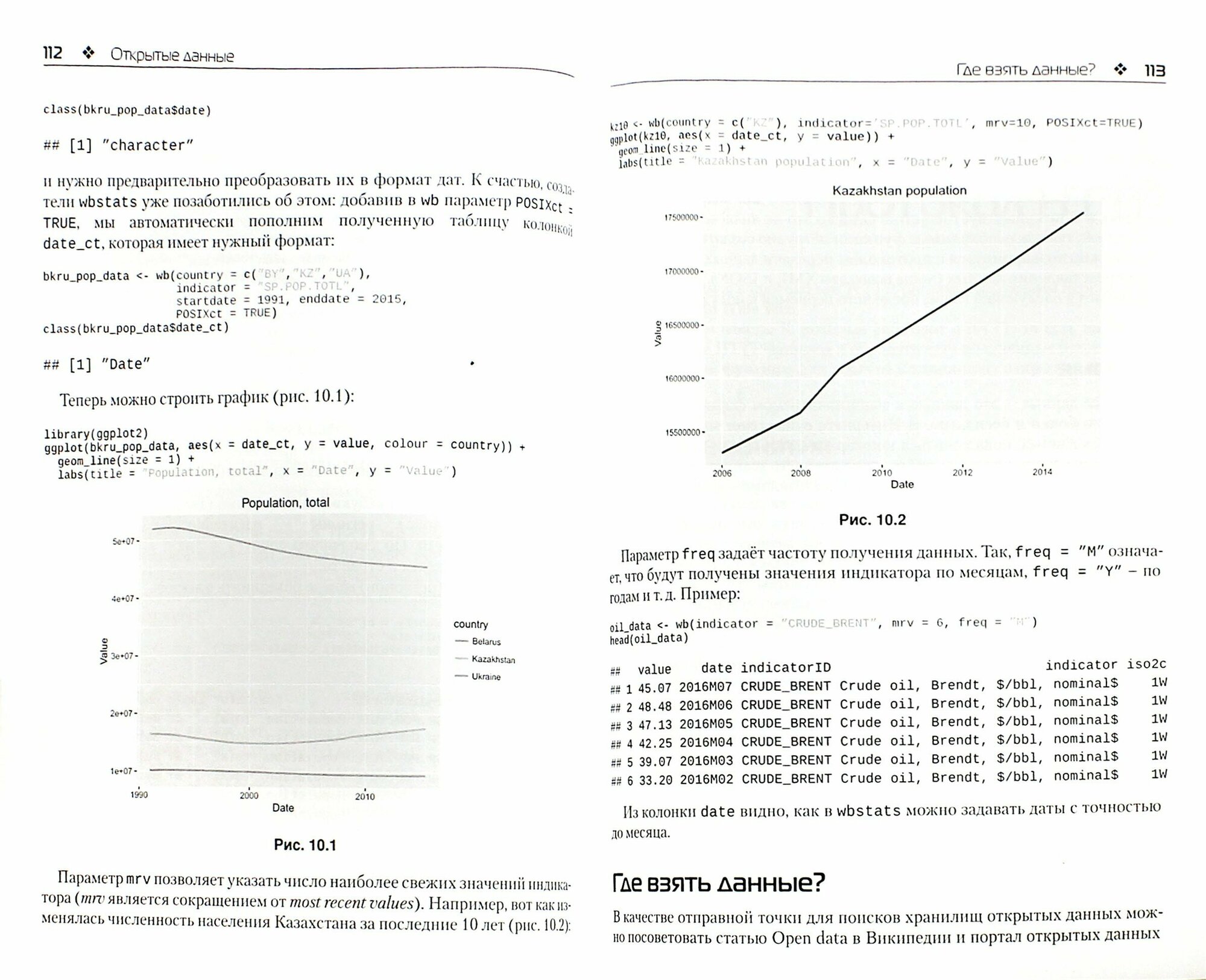 Основной материал книги разделён на две части. В первой части дано краткое введение в R - описание среды разработки, языка и основных пакетов-расширений. Вторая часть посвящена непосредственно сбору данных: работе с открытыми данными, извлечению данных из веб-страниц и из социальных сетей. Также рассмотрены необходимые технические вопросы: протокол HTTP, функции импорта данных различных форматов и регулярные выражения. Завершается рассказ созданием карт на основе собранных данных.