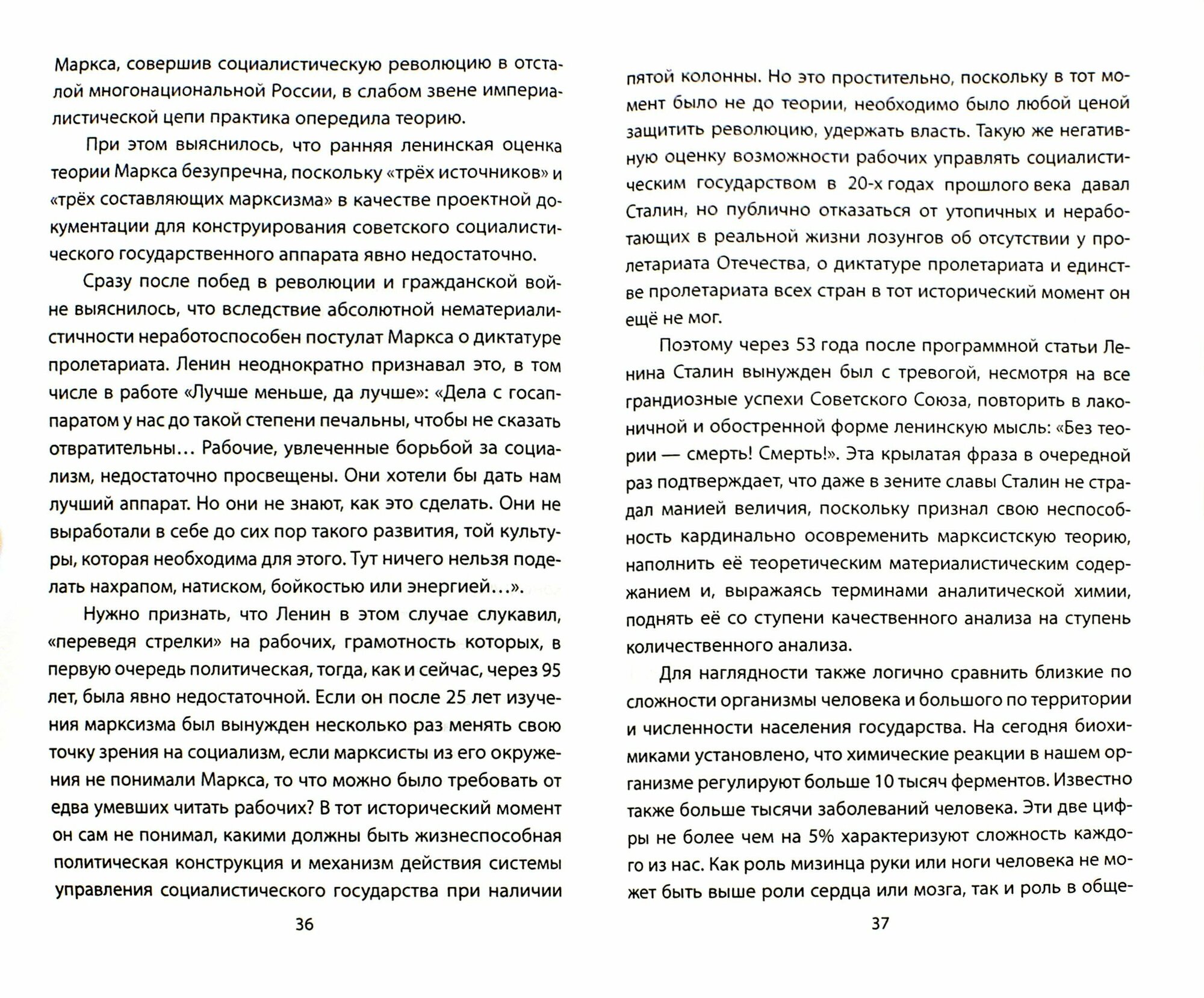 В книге сделан вывод о рациональности построения в XXI веке новой модели советского социализма, отличительными чертами которой являются закрепленные в Конституции двухпартийность, выборы по открытым общегосударственным партийным спискам и 5 критериев оценки личности партийно-государственного деятеля.