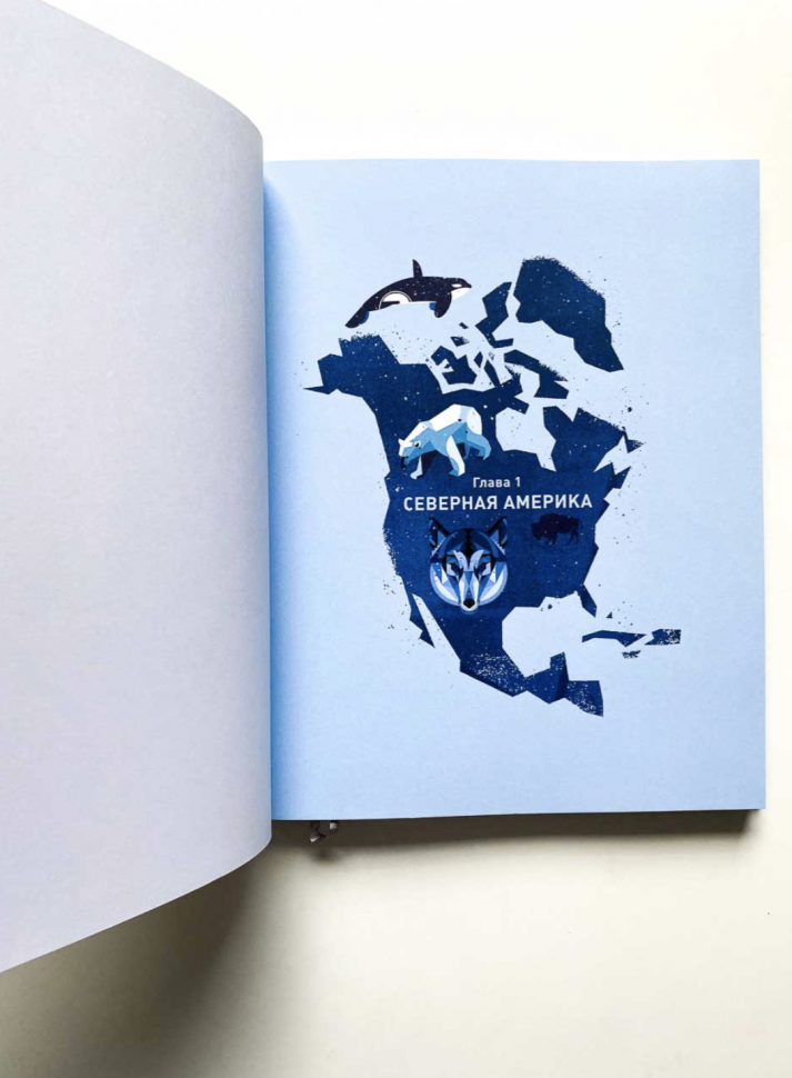 Шикарная книга, я в неописуемом восторге! Книга скорее альбом для рассматривания, который доставляет море удовольствия! Необычная техника рисования, но ооочень интересная, шикарный рельефный волк на обложке.В книге представлены Животные Севера - рисунки, интересные факты и небольшая информация о них.