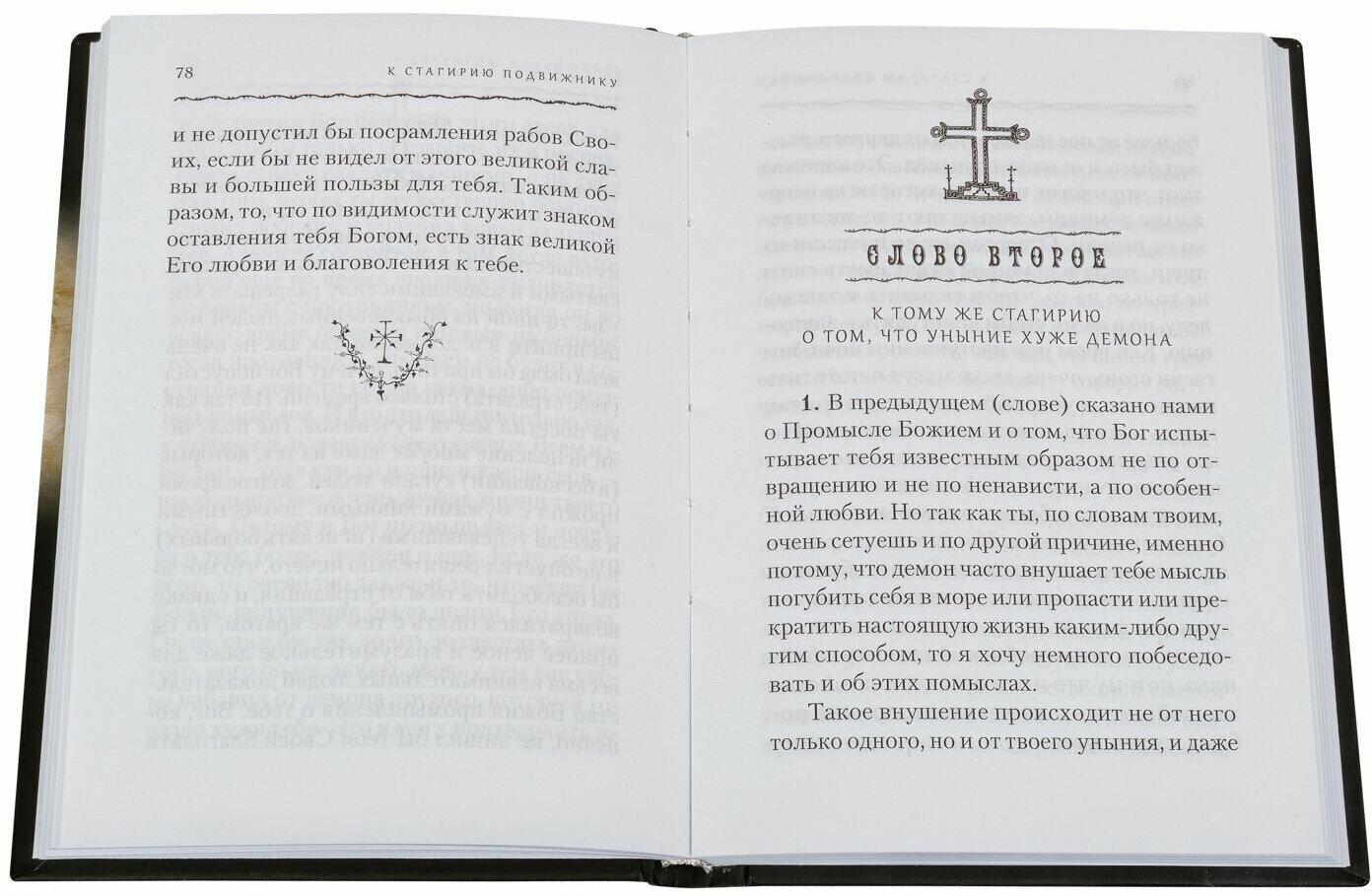 Автор, показывая примеры жизни и страданий библейских персонажей, подводит к тому, что скорбь Стагирия совсем небольшая по сравнению с ними. Доказывает, что уныние - грех. Нужно нести свой крест до конца, какой бы он ни был. Со своего креста не сходят, с него только снимают. Рекомендую для тех, кто считает, что его жизнь слишком тяжелая.