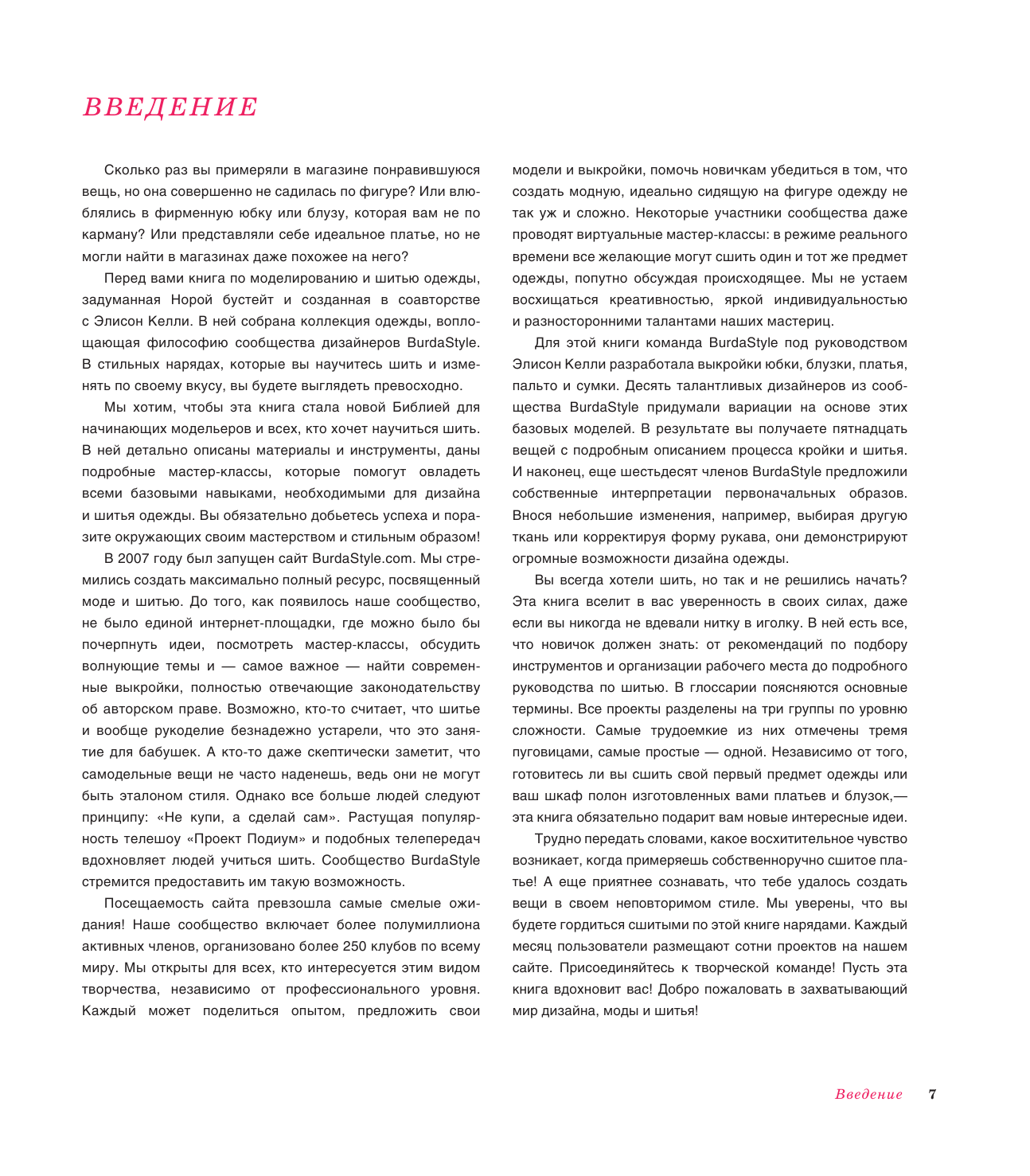 Создать модную, сидящую точно по вашей фигуре одежду зачастую проще, чем вы можете себе представить. И BurdaStyle - огромное содружество амбициозных и разбирающихся в моде дизайнеров - покажет вам, как это сделать. В этой книге вы найдете подробнейшие инструкции; пять базовых выкроек с возможностью любых модификаций: юбка, блузка, платье, пальто и сумка; пятнадцать подробных пошаговых мастер-классов; а также детальные описания базовых техник и необходимых для работы инструментов и материалов. Здесь есть все, что понадобится вам на пути от азов творчества к вершинам мастерства и созданию собственного неповторимого образа. Даже если вы никогда раньше не вдевали нитку в иголку, из этой книги вы узнаете, как оборудовать собственную мастерскую, как пользоваться швейной машинкой, как работать с выкройками и как правильно посадить изделие по фигуре. Перед опытными рукодельницами книга открывает прекрасные возможности для совершенствования своего мастерства, дарит множество вдохновляющих идей от семидесяти восьми членов сообщества BurdaStyle из всех уголков мира. Уникальный союз моды, креативности и профессионализма делает эту книгу великолепным и незаменимым гидом по шитью и стилю.