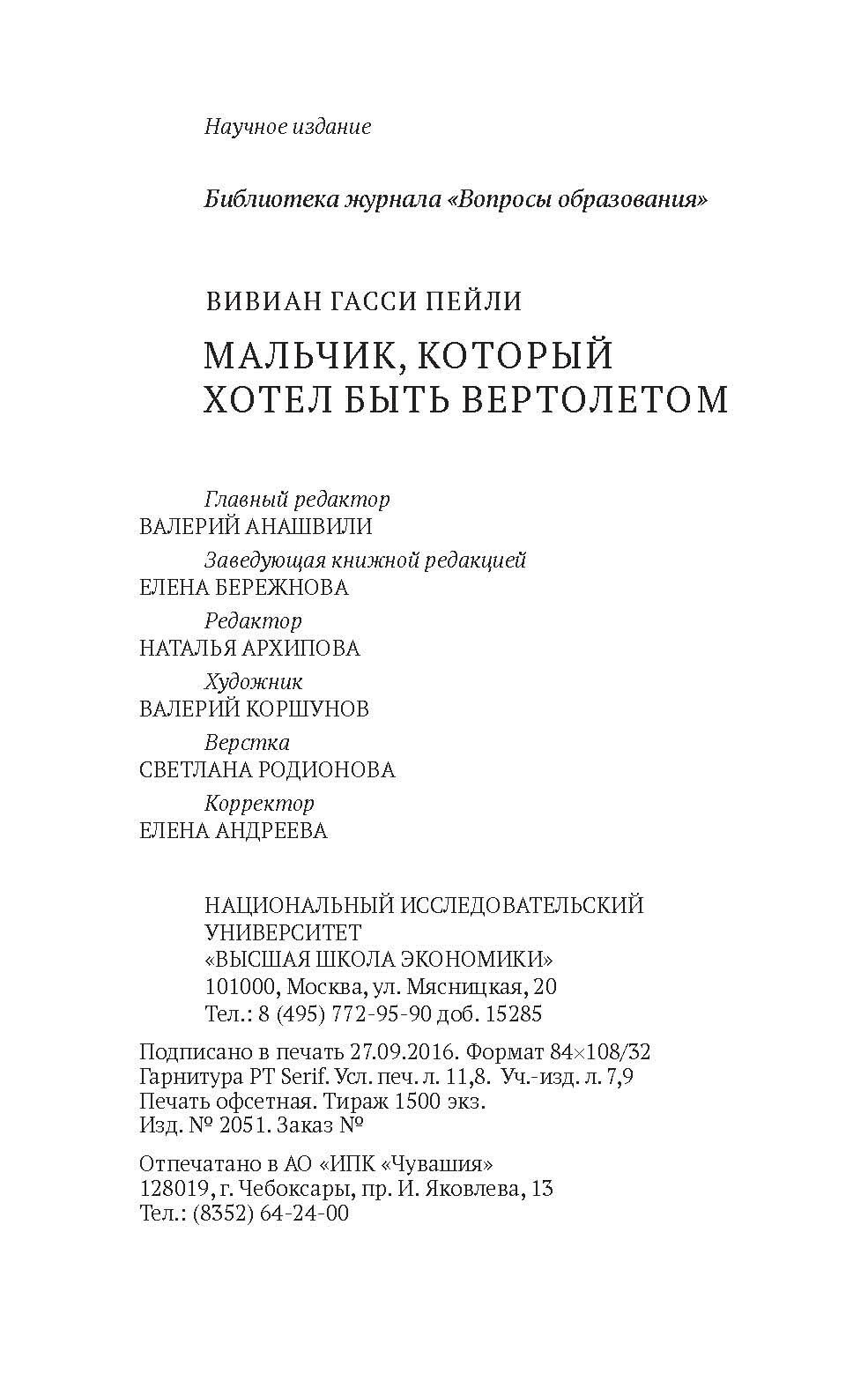 Мальчиккоторый хотел быть вертолётом (Пейли Вивиан Гасси); Издательский Дом ВШЭ, 2016