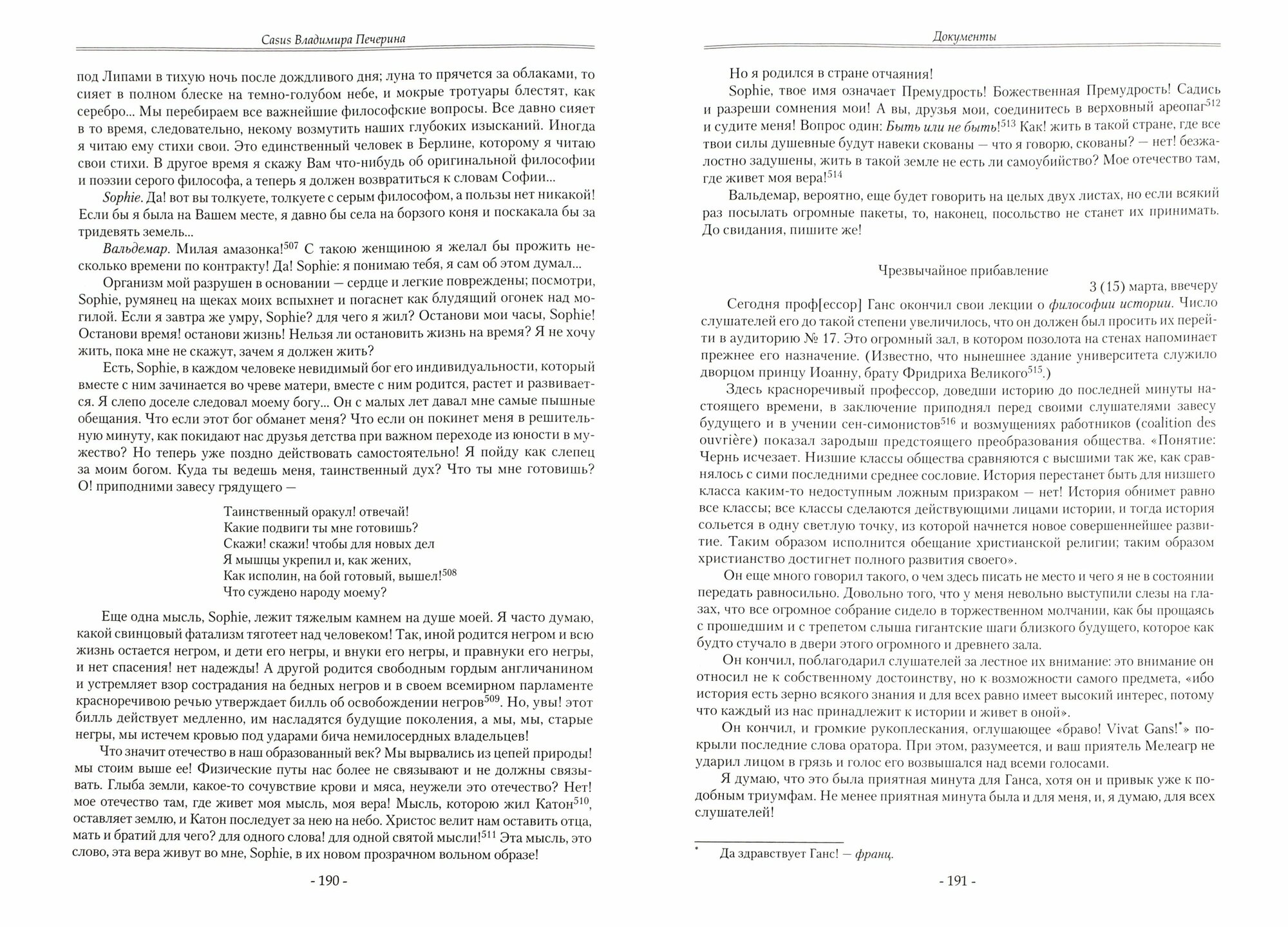 A. В. Никитенко и Ф. В. Чижовым за 1851-1878 годы, в новое собрание включены документы, относящиеся к более раннему периоду жизни В. С. Печерина - 1830-1840-м годам, времени обучения в Берлинском и преподавания в Московском университетах и первого десятилетия эмиграции. Это - преимущественно архивные материалы официального происхождения: переписка должностных лиц по поводу отправки его в Берлин, распределения в Москву, об увольнении в отпуск за границу, о невозвращении и последующем разыскании, о лишении прав состояния и подданства и т. д. Большой интерес представляют впервые вводимые в научный оборот экзаменационные ответы В. С. Печерина на вопросы, заданные ему в процессе испытания на степень доктора наук, а также его эпистолярное наследие тех лет, расширяющее и углубляющее наши представления о духовных переживаниях, предшествовавших переходу в католичество и принятию монашества.