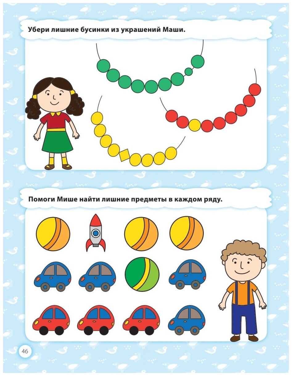 Пособие представляет собой учебник-рабочую тетрадь, из которой ребенок узнает основные свойства фигур (цвет, размер, форма) и одновременно развивает моторику рук(раскрашивания, соединяет и т.д.).На страницах пособия происходит путешествие главных героев Миши и Маши, и вместе с ними ребенок узнает новое, классифицирует, делает ассоциации, исправляет ошибки, которые допустили герои, выполняет задание по инструкции (раскрась квадрат синим цветом и т.д.) Книга с яркими иллюстрациями, и плотными листами, что очень важно, так как ребенок может перелистывать пособие много раз и не порвать страницы. Мы довольны пособием.Есть продолжения, которые так же споросбтвую развитию речи детей.