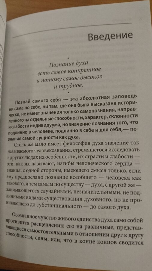 Философия Гегеля имеет принципиальное значение не только на уровне фундаментальной философской теории, но также и в прикладном смысле, что позволяет и сегодня с интересом обращаться к его наследию. Гегель описывает становление Духа, когда из ничто (как тезиса) идет развитие, снимающее это ничто (антитезис), и завершается в снятии второго момента (синтез). В экзистенциальном (прикладном) отношении это означает понимание того, что в нашей жизни всегда существует и будет существовать настоятельность усилия по снятию противостоящих моментов. Для успешного осуществления такого усилия необходимо открыть в себе трансцендентное и признание его присутствие вовне. Т.е. зкзистенциально множественное стремится к единому, которое достигается в поступке и действии. Непреходящие значение книги очевидно.