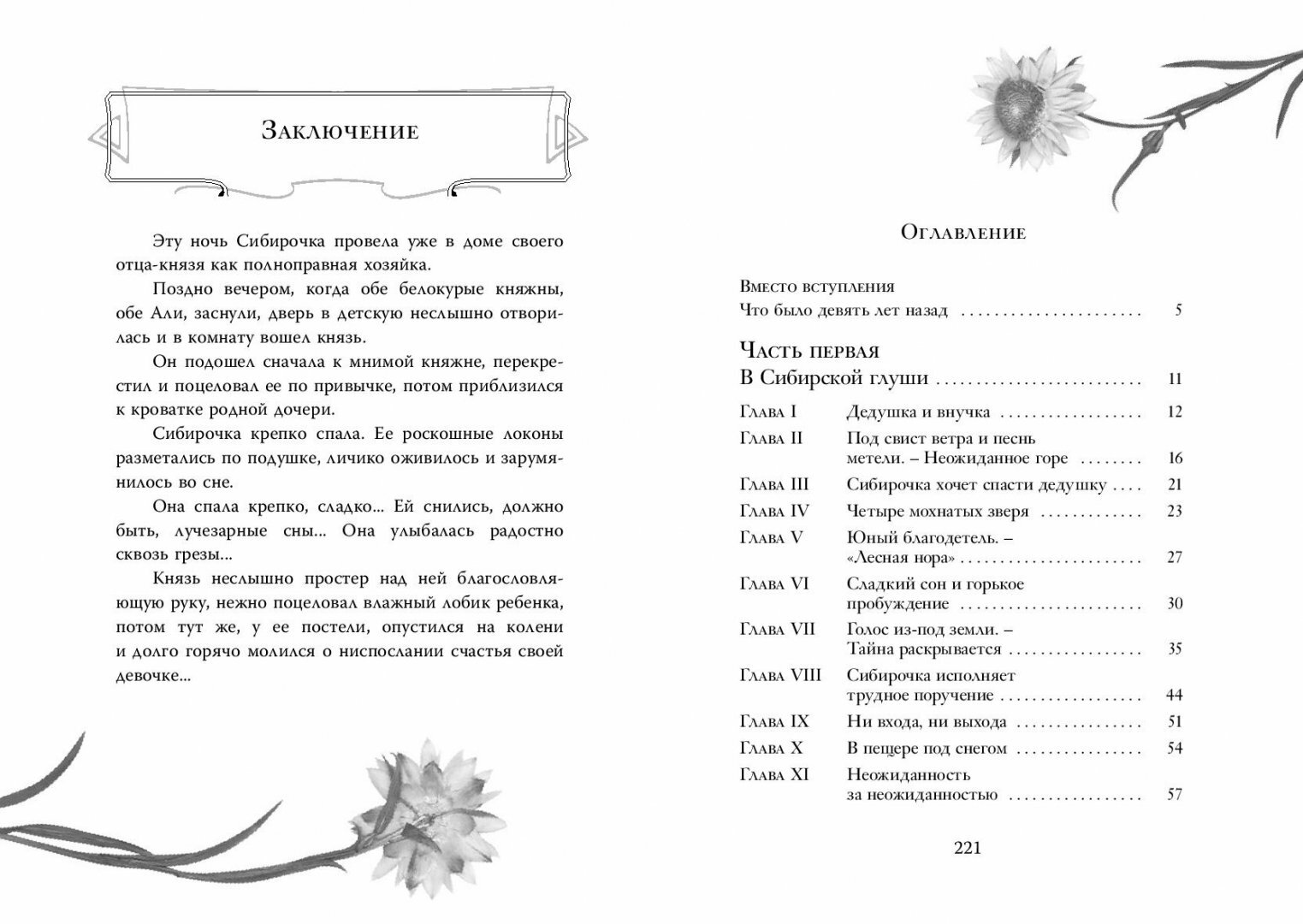 На долю главной героини повести выпало немало тяжелых испытаний и потрясений: смерть любимого дедушки, плен у беглых каторжников, нелегкая работа в цирке и предательство близких. Но сильный характер и доброе сердце помогли Сибирочке преодолеть все напасти и в конце концов обрести любящую семью.