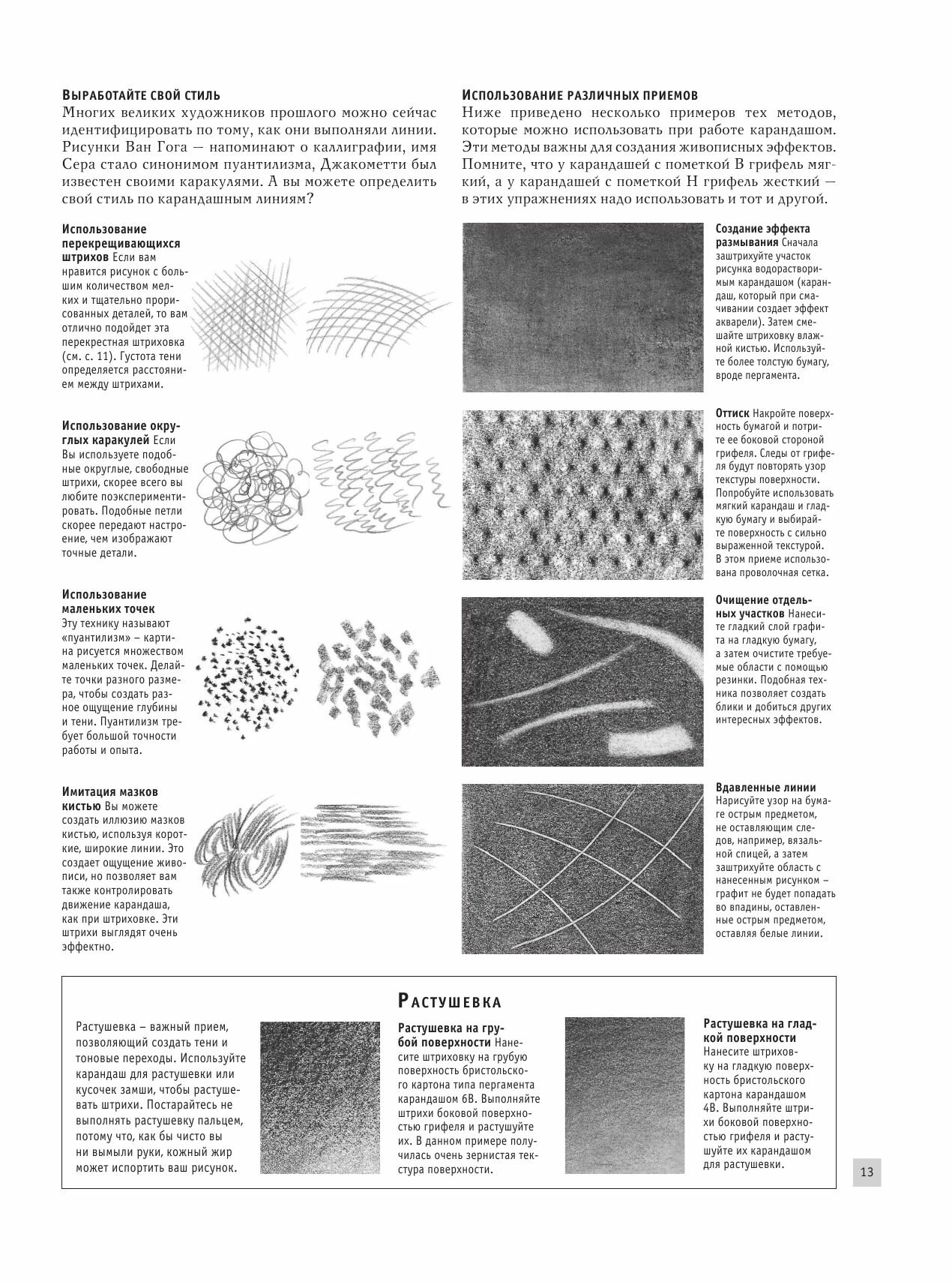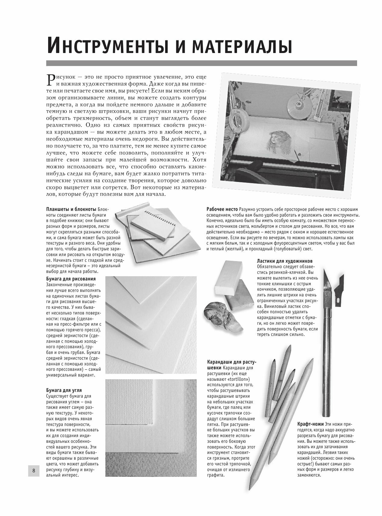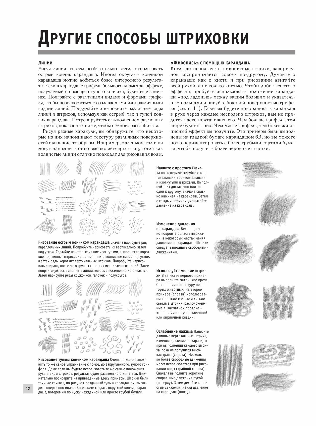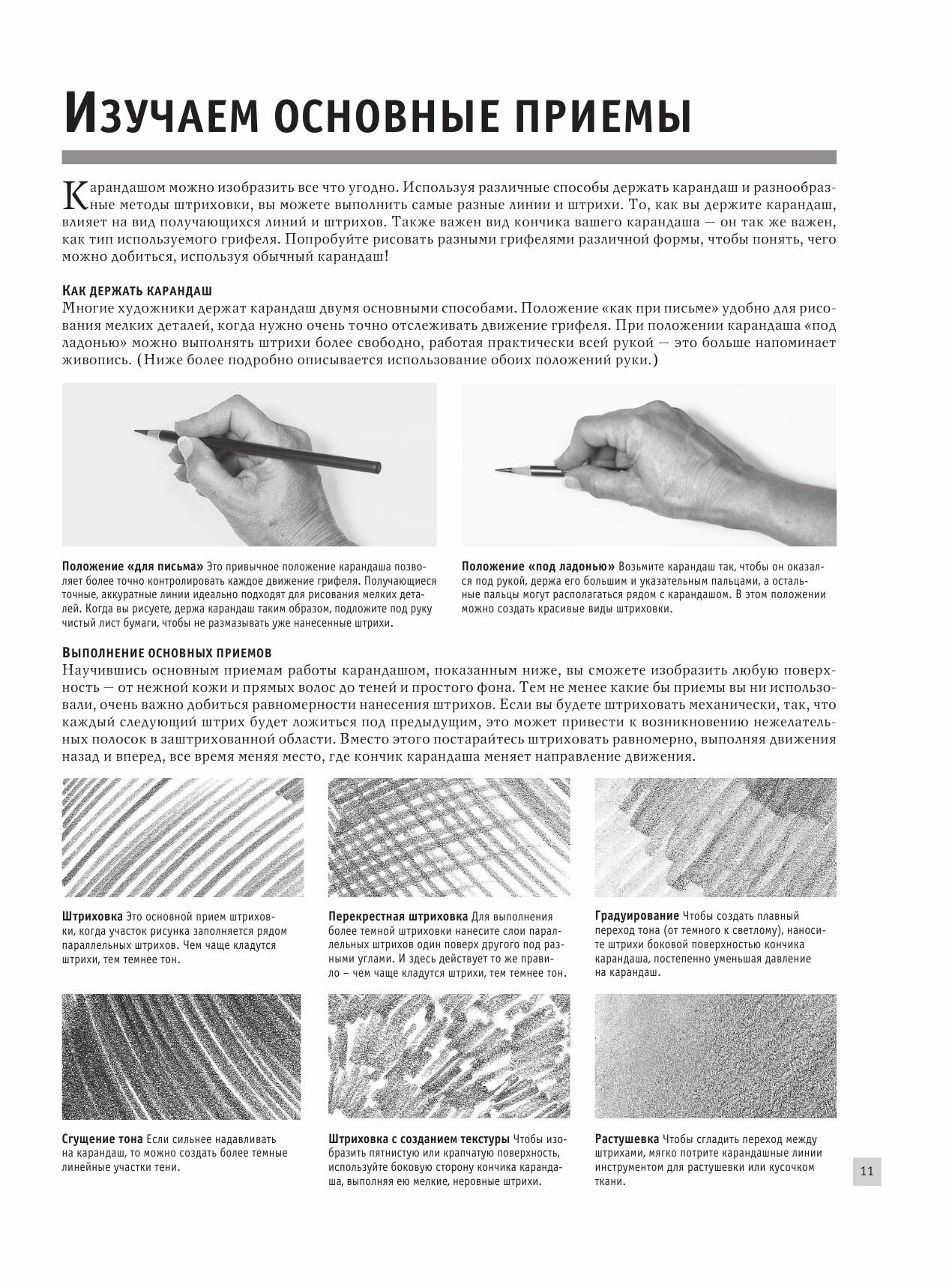 Искусство карандашного рисунка универсально - это и небольшой набросок предмета и сложная композиция, с полным диапазоном тональных оттенков. Художники, работы которых представлены в этой книге, создали свой собственный, особый подход к рисунку, отраженный в многочисленных и универсальных уроках. Авторы научат вас как нарисовать натюрморт, животных, пейзаж и портрет. Следуя инструкциям и описаниям, представленным в этой книге, вы обретете так необходимое вам вдохновение.
