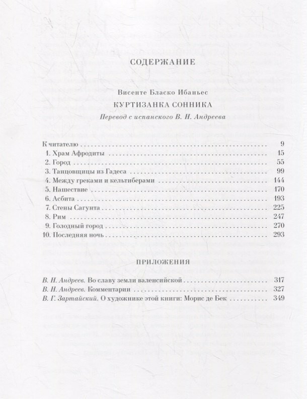 Висенте Бласко Ибаньес (1864-1928) - один из крупнейших испанских прозаиков ХХ века. Его знаменитый исторический роман "Куртизанка Сонника" рассказывает об осаде карфагенским полководцем Ганнибалом иберийского города Сагунта в 219 году до н.э. Героическая оборона и гибель Сагунта стала поводом к началу Второй Пунической войны. В центре романа - история любви изнеженной куртизанки Сонники и греческого наемника Актеона. Бласко Ибаньес, рисуя пышные празднества и разгульные оргии сагунтинцев, суровый быт кельтиберов, кровавые битвы с карфагенскими наемниками, мастерски воссоздает атмосферу описываемой эпохи. Новый перевод романа, послесловие и комментарии специально для настоящего издания подготовил известный литературовед и переводчик В.Н. Андреев. В книге впервые в России воспроизводятся 60 иллюстраций к роману, созданных выдающимся французским графиком Морисом де Беком для редкого парижского издания 1928 года.