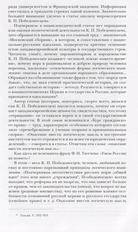 Книга петербургского историка С.Л.Фирсова - жизнеописание крупнейшего государственного и церковного деятеля последней трети XIX - начала XX веков, обер-прокурора Святейшего синода и учителя императоров Александра III и Николая II Константина Петровича Победоносцева. В течение многих десятилетий имя Победоносцева воспринималось как символ "реакции", а его самого аттестовывали преимущественно как идейного врага демократии и убежденного сторонника самодержавия. Автор книги пытается ответить на вопрос, насколько верны подобные оценки, насколько принципы, отстаиваемые Победоносцевым, соответствовали той социально-политической и морально-нравственной ситуации, в которой находилась Российская империя накануне революционных потрясений XX века. Человек незаурядного ума и выдающихся способностей, юрист и публицист, Победоносцев характеризуется автором как "интеллектуал во власти", при жизни увидевший крах собственных политических идеалов. Биография написана с привлечением многочисленных источников, в том числе и вводимых в исторический оборот впервые, богато проиллюстрирована и снабжена аннотированным указателем имен.