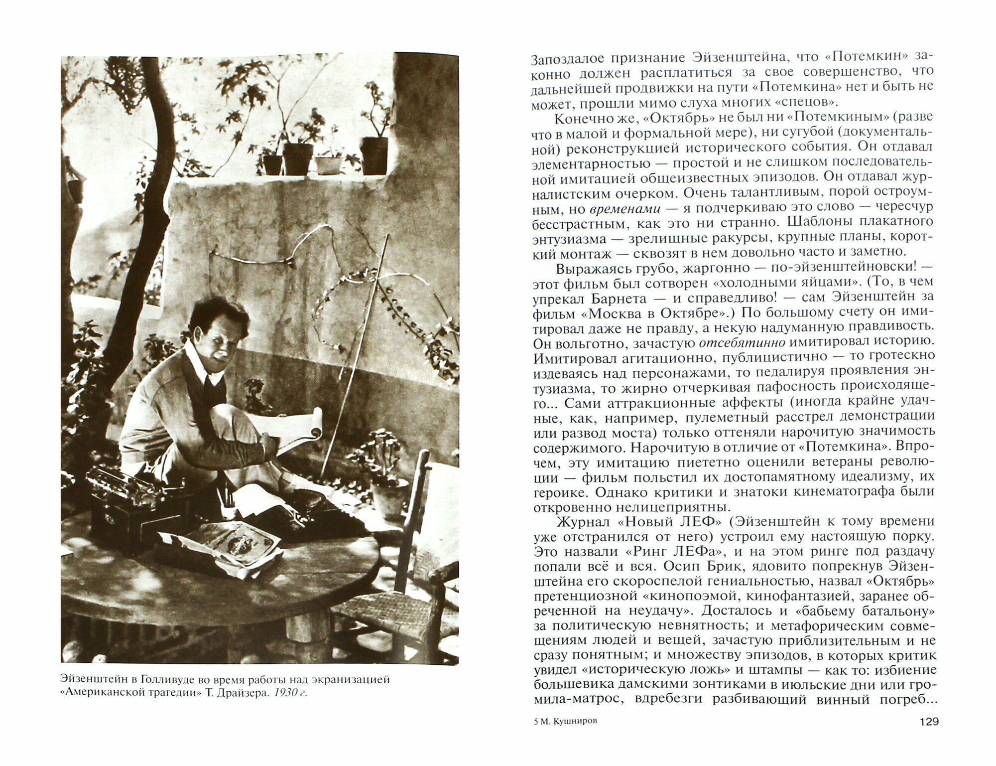 Теоретик. Я боялась, что одна не понимаю некоторых писательских трудов Эйзенштейна, если и продираюсь через предложения, то смысл улавливаю с трудом. Но Кушниров меня успокоил, отметив, что режиссёр нередко сбивается в косноязычие и бессвязность. При этом у него есть изумительно лёгкие, едва не поэтические (при всём равнодушии к поэзии) страницы.