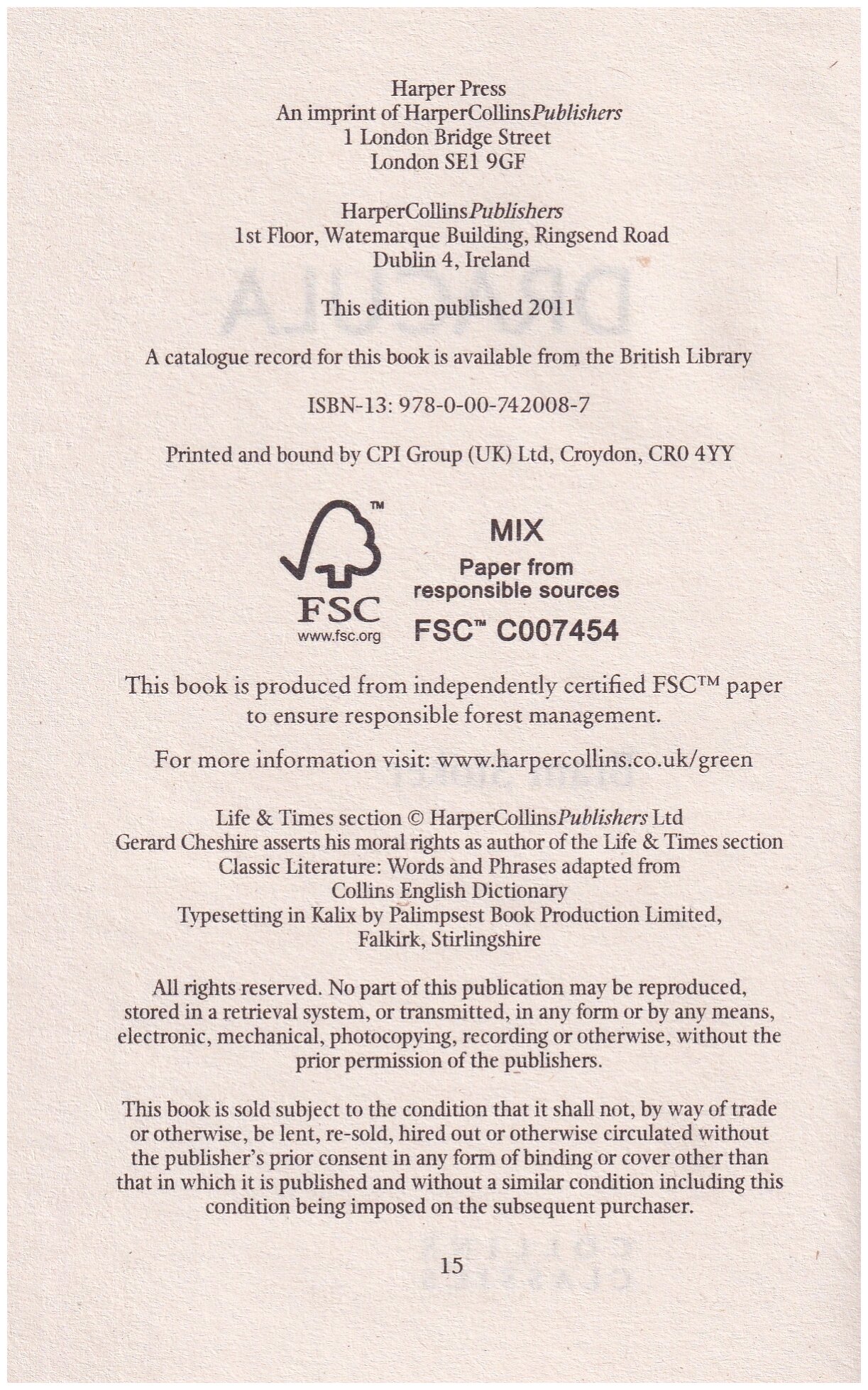 Книга: Dracula (Брэм Стокер); Harper Collins Publishers, 2011