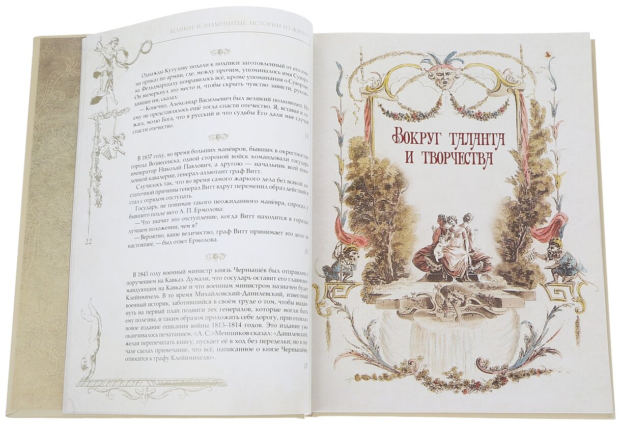В этом издании собраны истории из жизни великих и знаменитых людей, извлечённые из разных источников, среди которых "Сравнительные жизнеописания" Плутарха, "Максимы и мысли" Николя Шамфора, "Подлинные анекдоты о Петре Великом" Якова Штелина, записные книжки Петра Вяземского и многое другое.