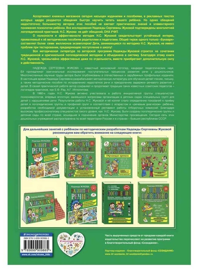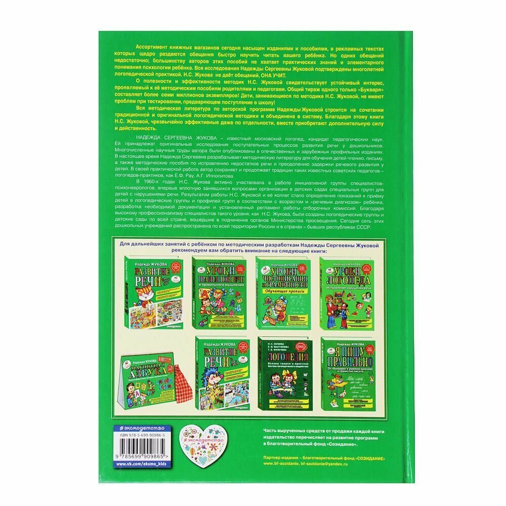"Букварь" Надежды Жуковой уже много лет успешно используют родители, воспитатели и педагоги. Авторская методика от известного логопеда-педагога помогает быстро освоить навык чтения. Суть методики заключается в изучении слогов, а не отдельно взятых букв. Она позволяет быстро научиться читать и легко перейти к письму. Благодаря удобному порядку изучения происходит формирование устойчивого интереса к процессу чтения. Внизу каждой страницы даны комментарии и рекомендации для родителей. Эта книга – отличная подготовка к школе и поступлению в 1 класс. Жукова – один из самых известных авторов в сегменте детской образовательной литературы! Ее "Букварь" — пример классического учебного пособия, в котором сочетаются традиционная и оригинальная логопедические методики чтения по слогам.